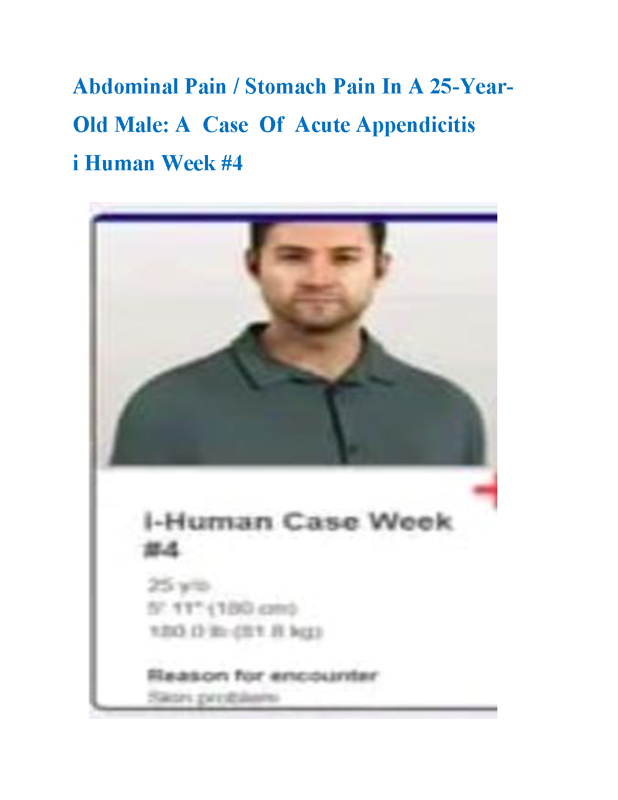 iHuman Week 4 Case Study: Abdominal Pain in a 25-Year-Old Male (Acute Appendicitis) | Latest 2025/2026 Guide to Pass First Try