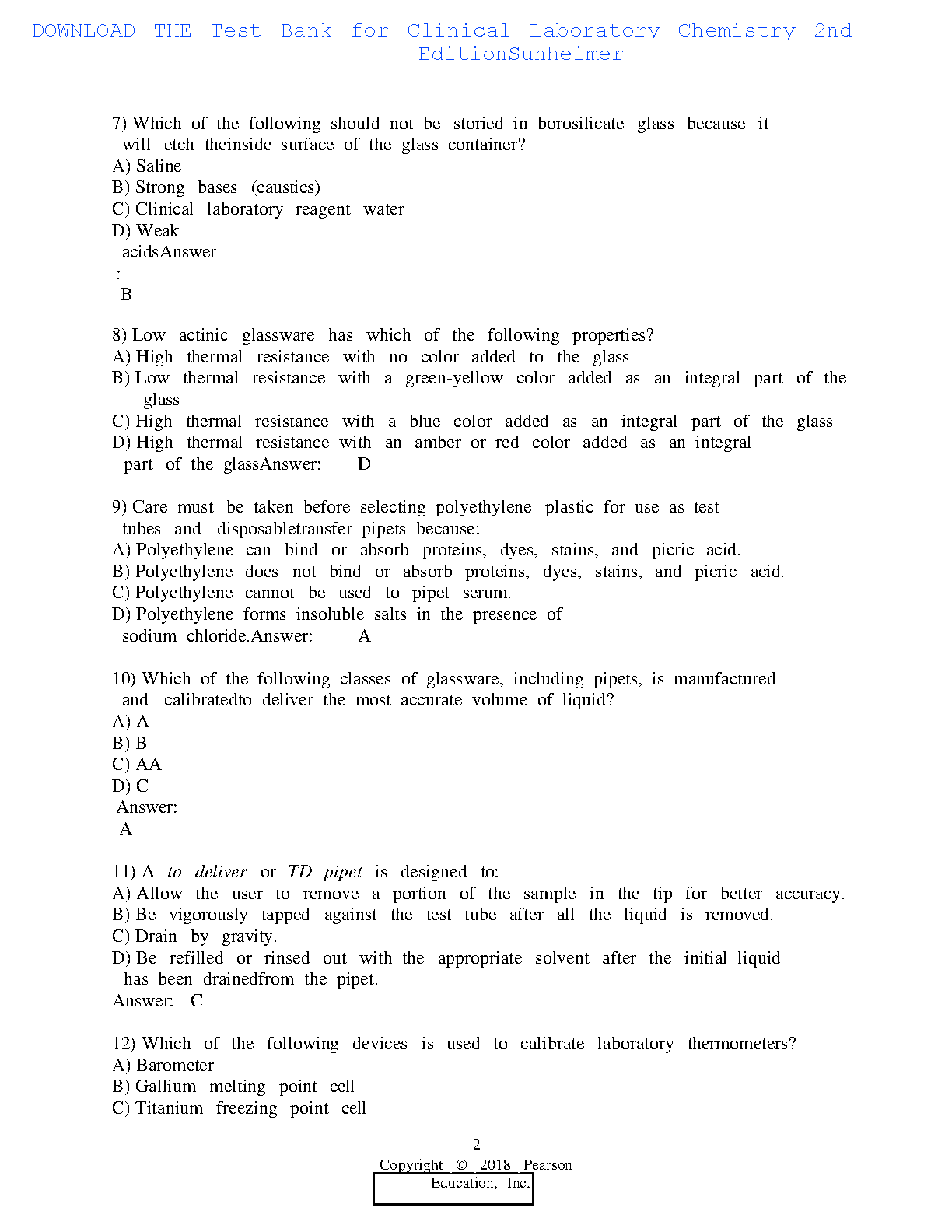 Test Bank for Clinical Laboratory Chemistry, 2nd Edition by Robert L. Sunheimer & Linda Graves