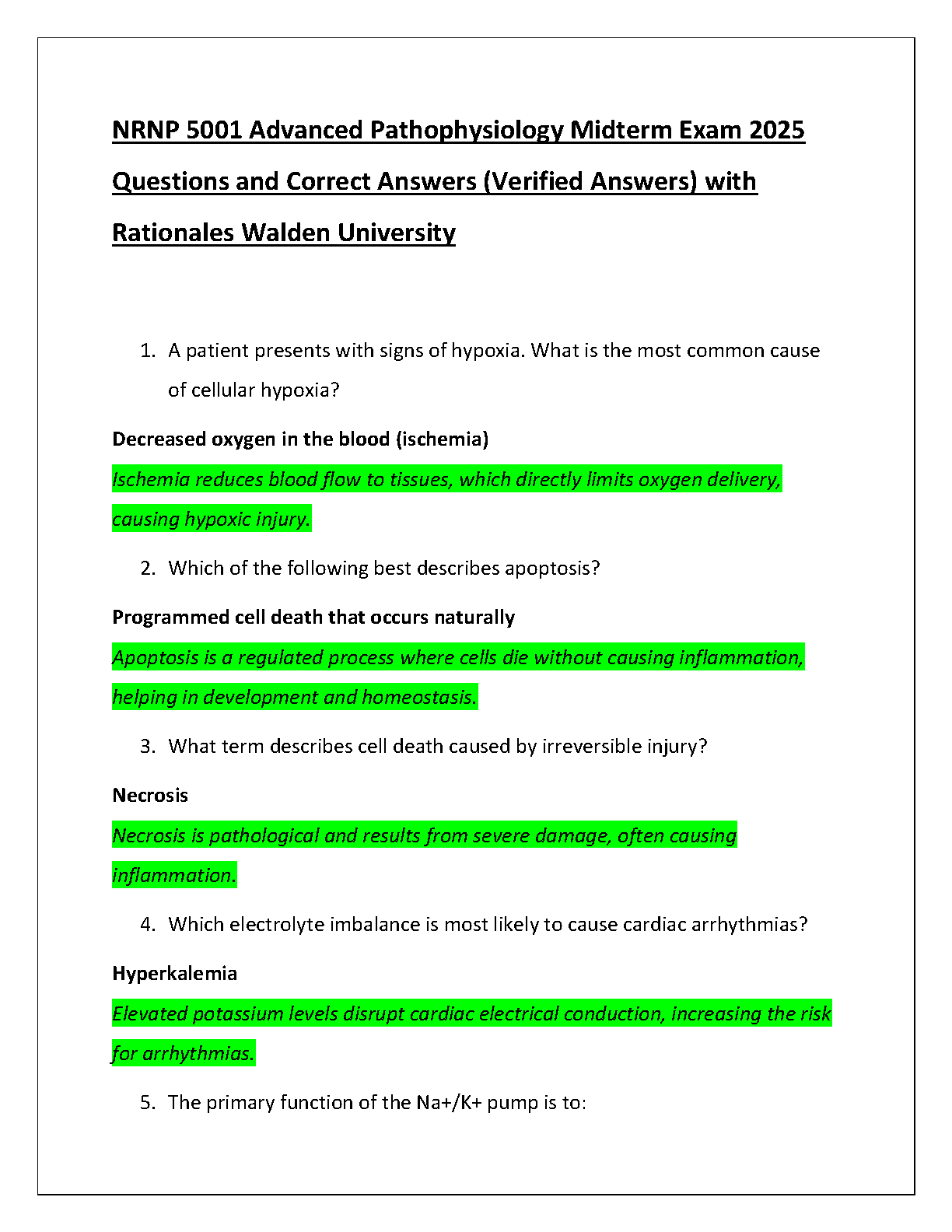 NRNP 5001 Advanced Pathophysiology Midterm Exam 2025 Test Bank - Walden University | Verified Questions, Answers & In-depth Rationales