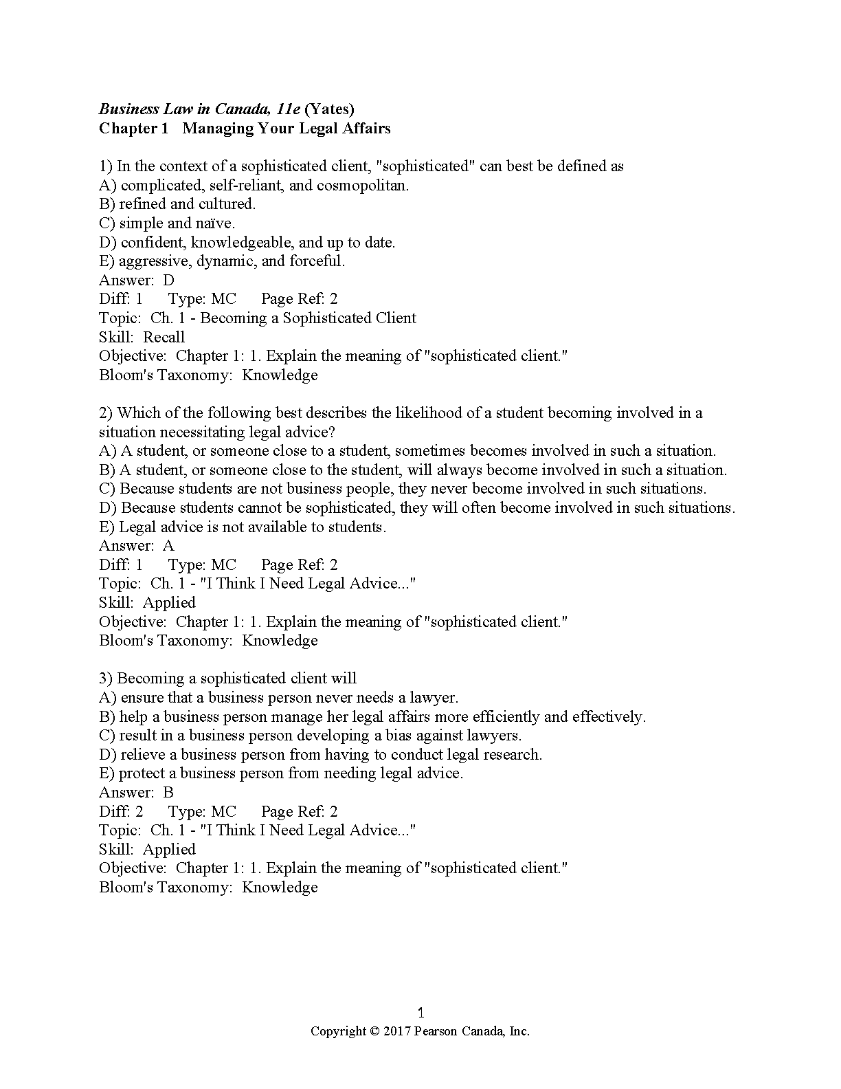 Unlock your full academic potential with the complete Test Bank for Business Law in Canada, 11th Edition. Authored by Yates, Bereznicki-Korol, and Clarke, this essential study resource provides an extensive collection of exam-style questions, including multiple-choice, true/false, and scenario-based problems. It is meticulously designed to align with the textbook's chapters, helping you master key legal concepts, identify areas for improvement, and build confidence for your exams. Gain the edge you need to excel in your Canadian business law course and pass with flying colors.