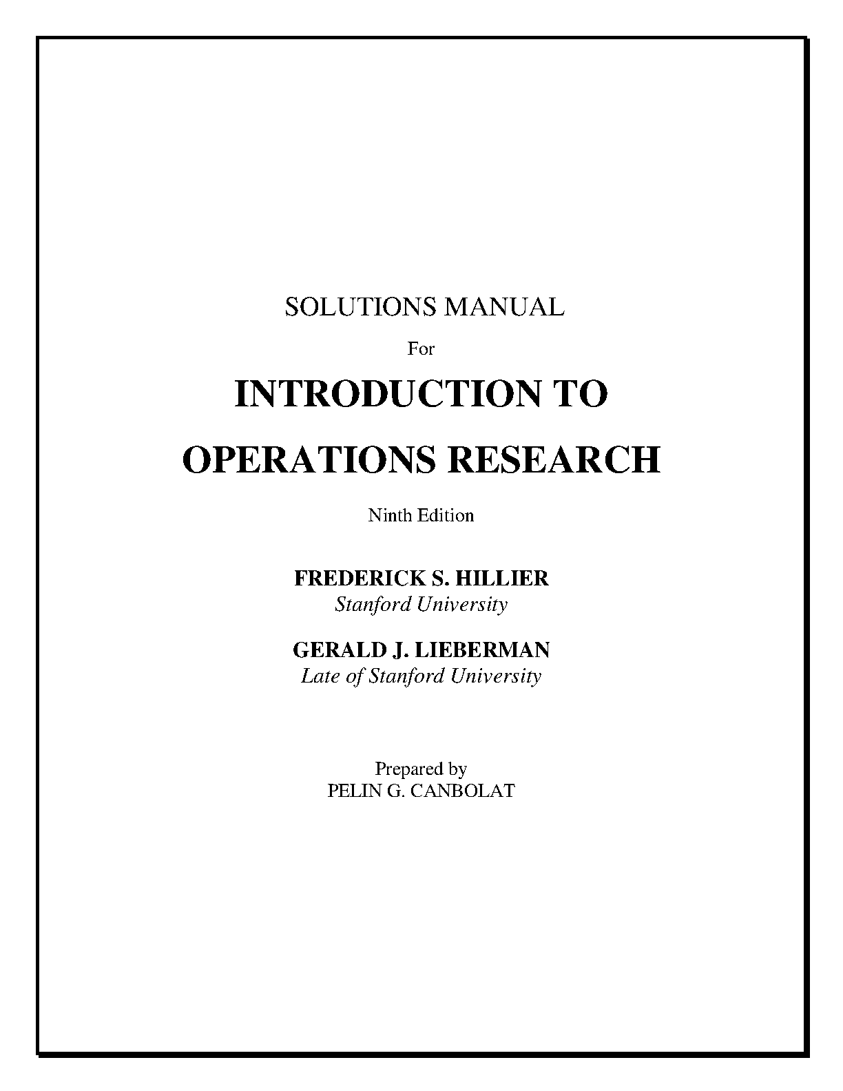 Solutions Manual for Introduction to Operations Research, 9th Edition by Frederick S. Hillier & Gerald J. Lieberman