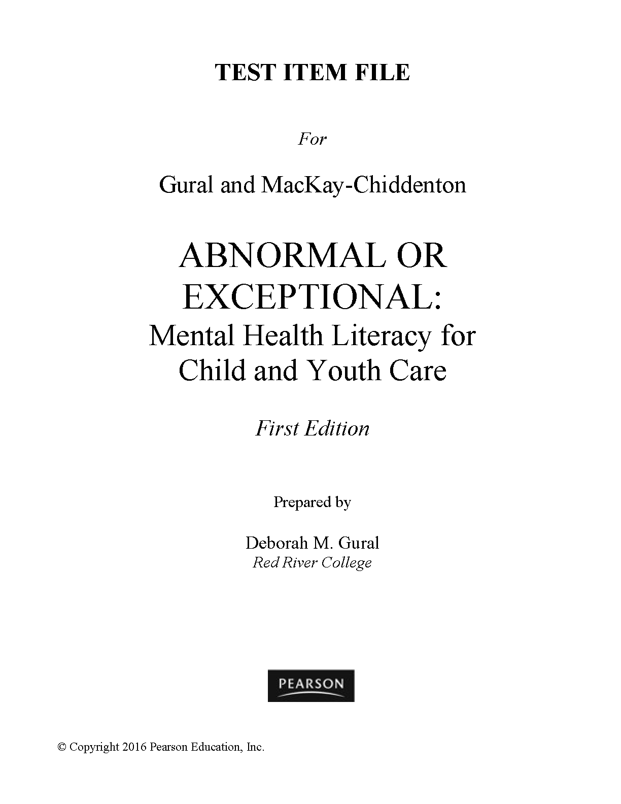 Test Bank for Abnormal or Exceptional: Mental Health Literacy for Child and Youth Care, 1st Edition by Deborah M. Gural, Robyn MacKay-Chiddenton