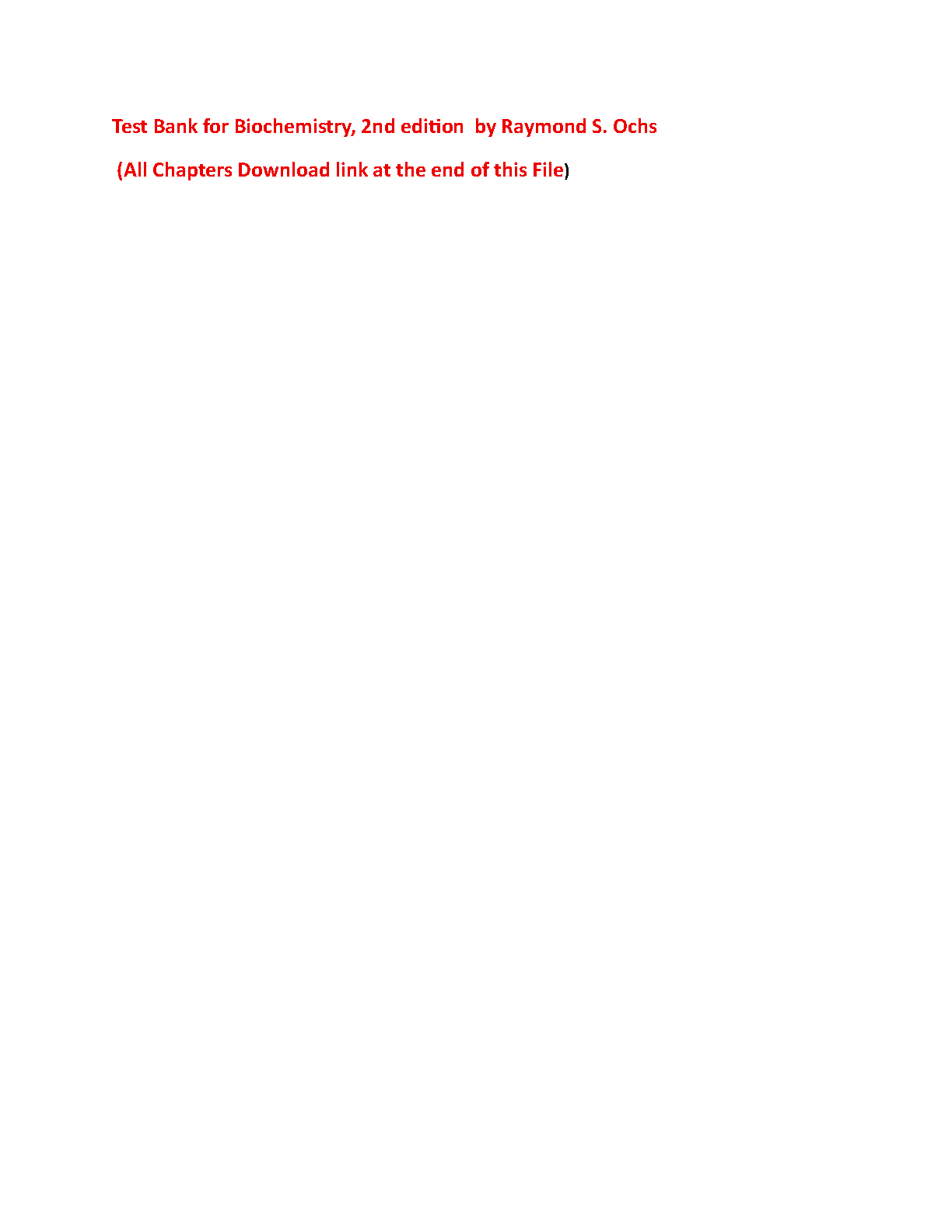 Test Bank for Biochemistry, 2nd Edition by Raymond S. Ochs - All Chapters Q&A