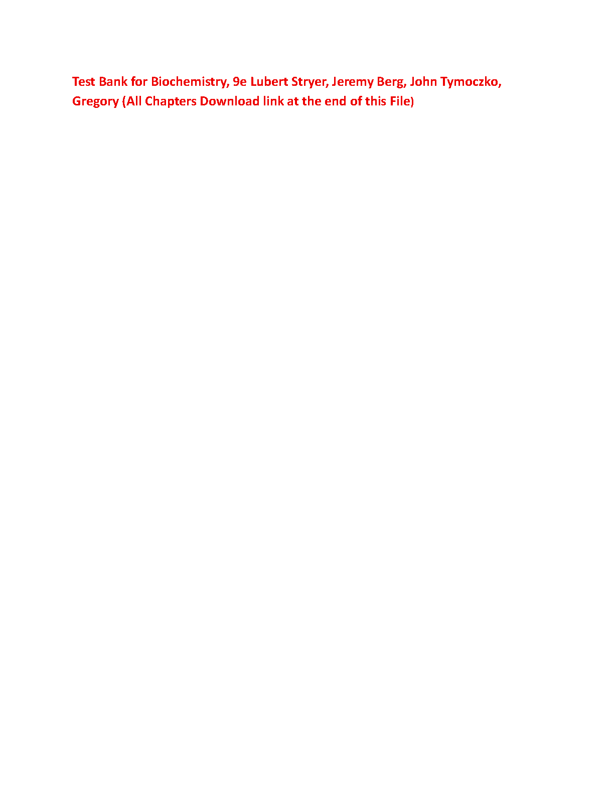 Test Bank for Biochemistry, 9th Edition by Lubert Stryer, Jeremy M. Berg, John L. Tymoczko, Gregory J. Gatto, Jr. - All Chapters