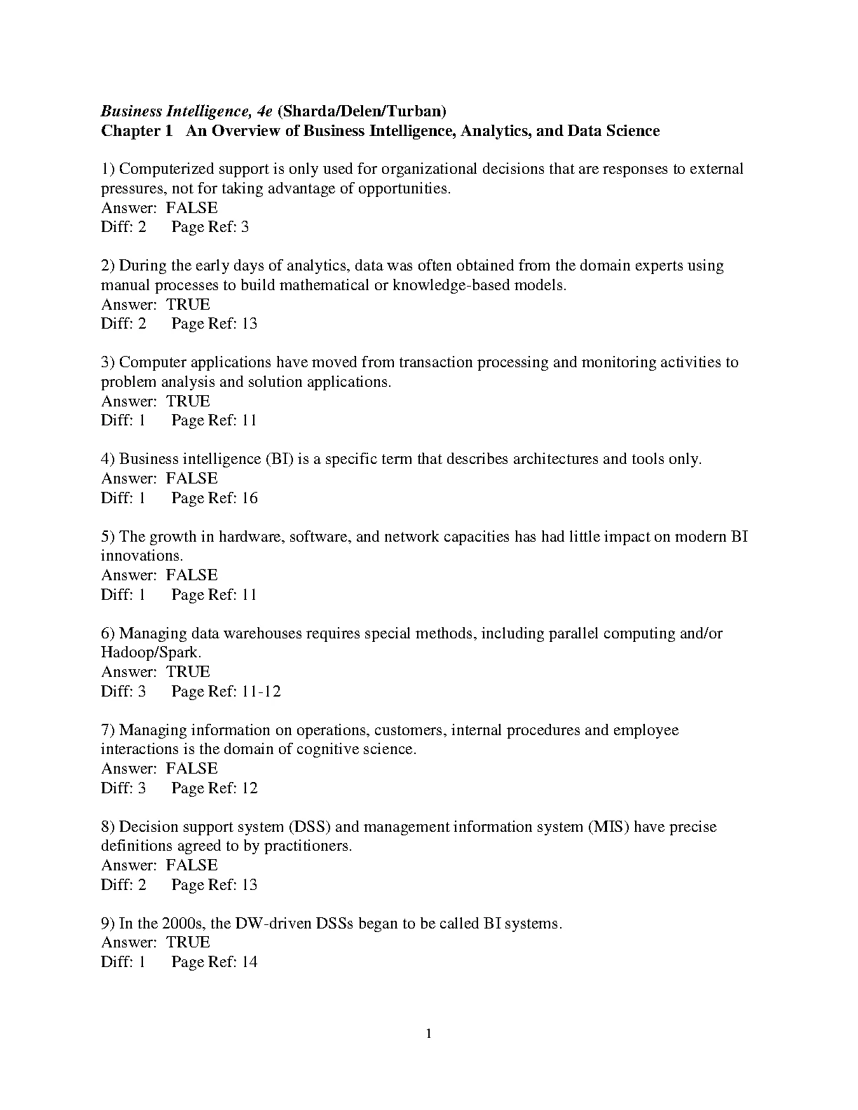 TEST BANK FOR Business Intelligence, 4TH EDITION (BY Sharda/Delen/Turban)