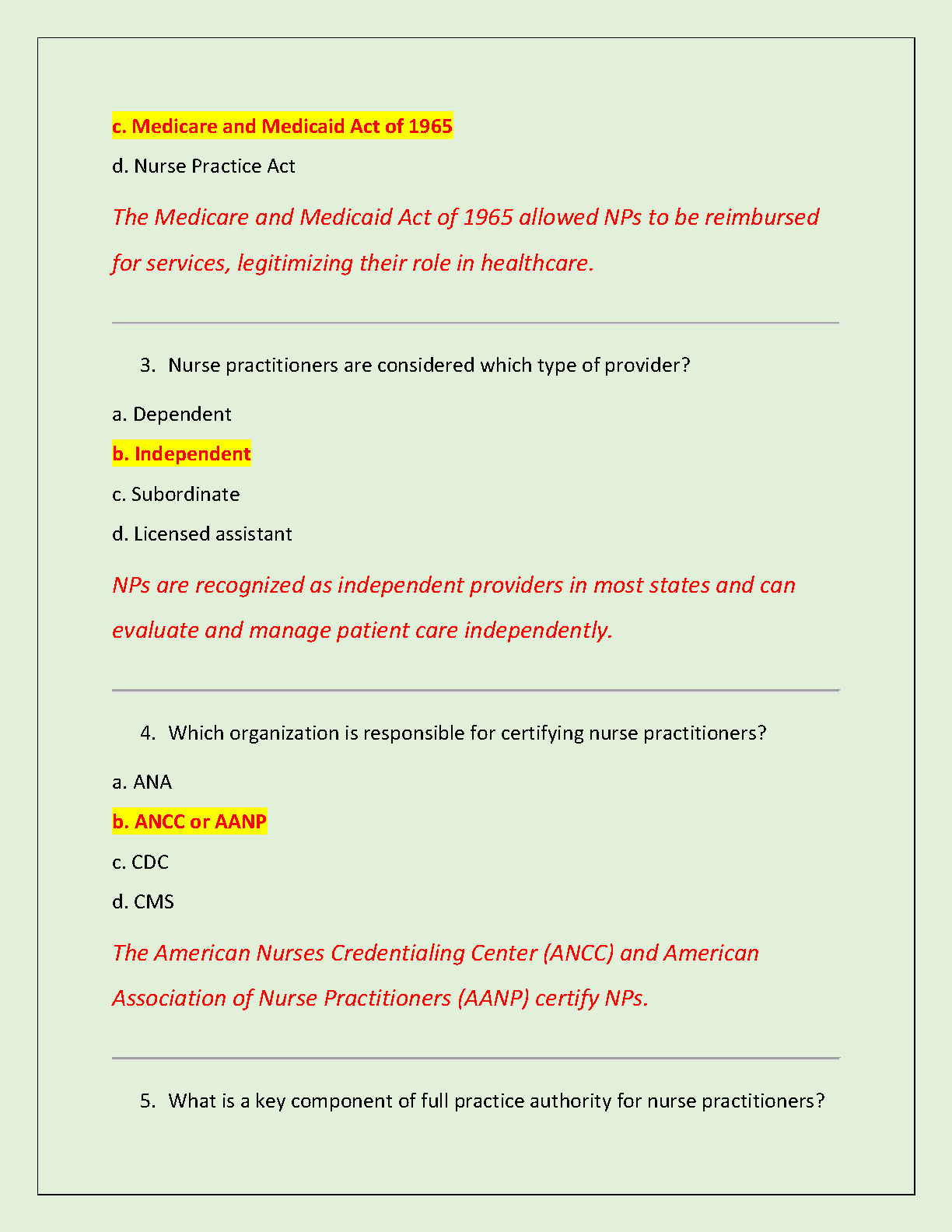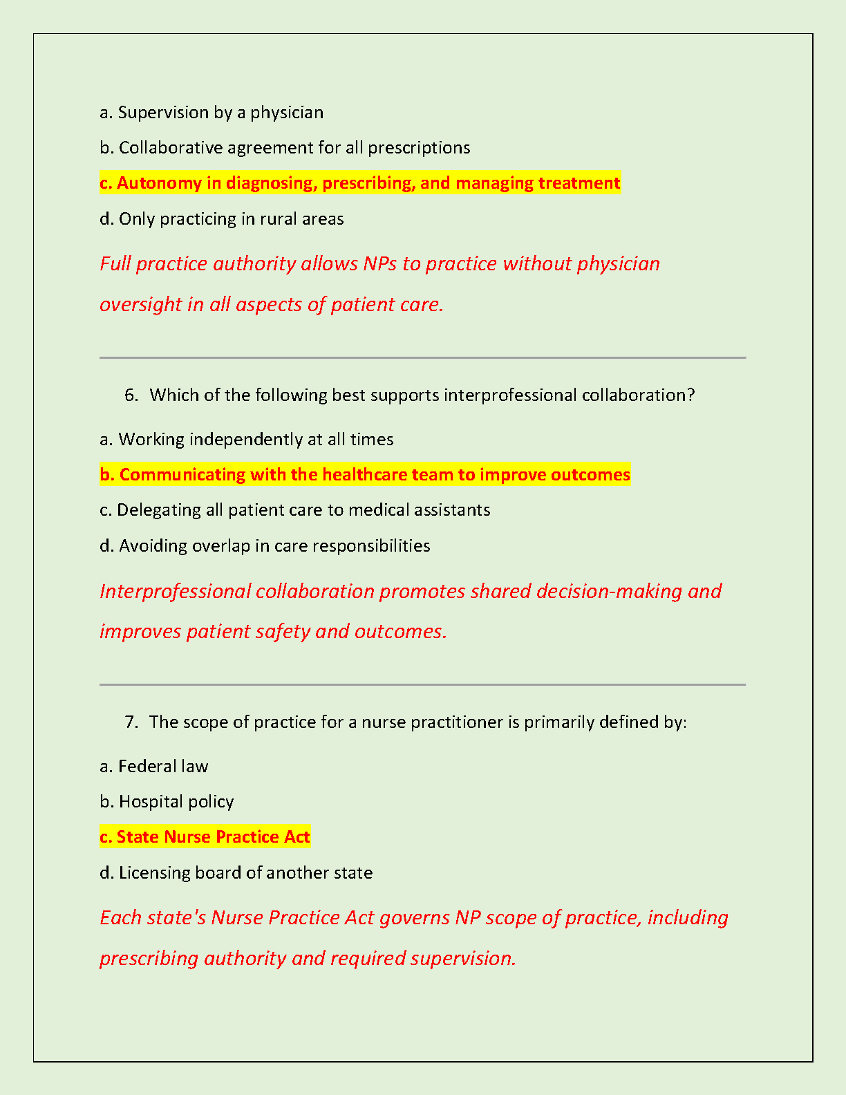 NRNP 5050 Role of the Nurse Practitioner Final Exam 2 Test Bank | 2025/2026 Updated Q&A with Rationales | Guaranteed Pass