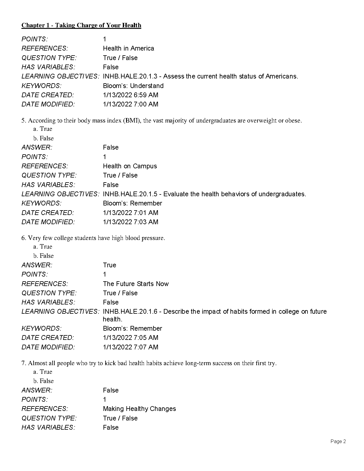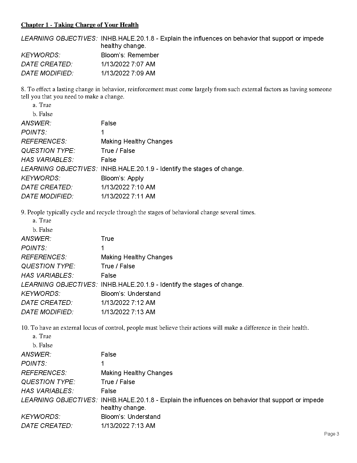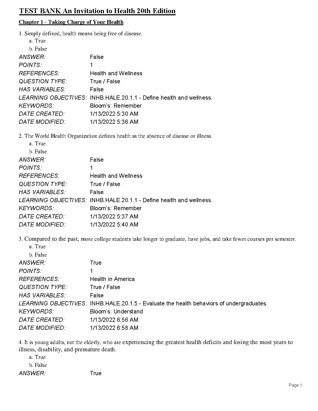 Test Bank for An Invitation to Health, 20th Edition by Dianne Hales and Lara Lauzon