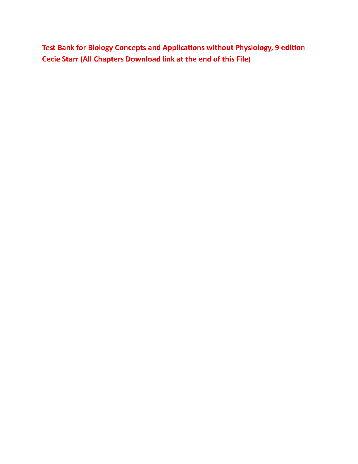 Test Bank for Biology: Concepts and Applications without Physiology, 9th Edition by Cecie Starr, Christine A. Evers, Lisa Starr