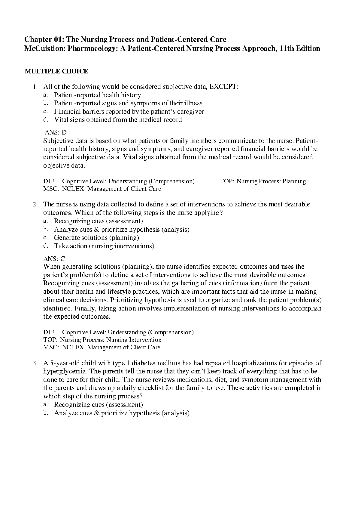 Test Bank for Pharmacology: A Patient-Centered Nursing Process Approach, 11th Edition by Linda E. McCuistion, Kathleen DiMaggio, Mary B. Winton, and Jennifer J. Yeager