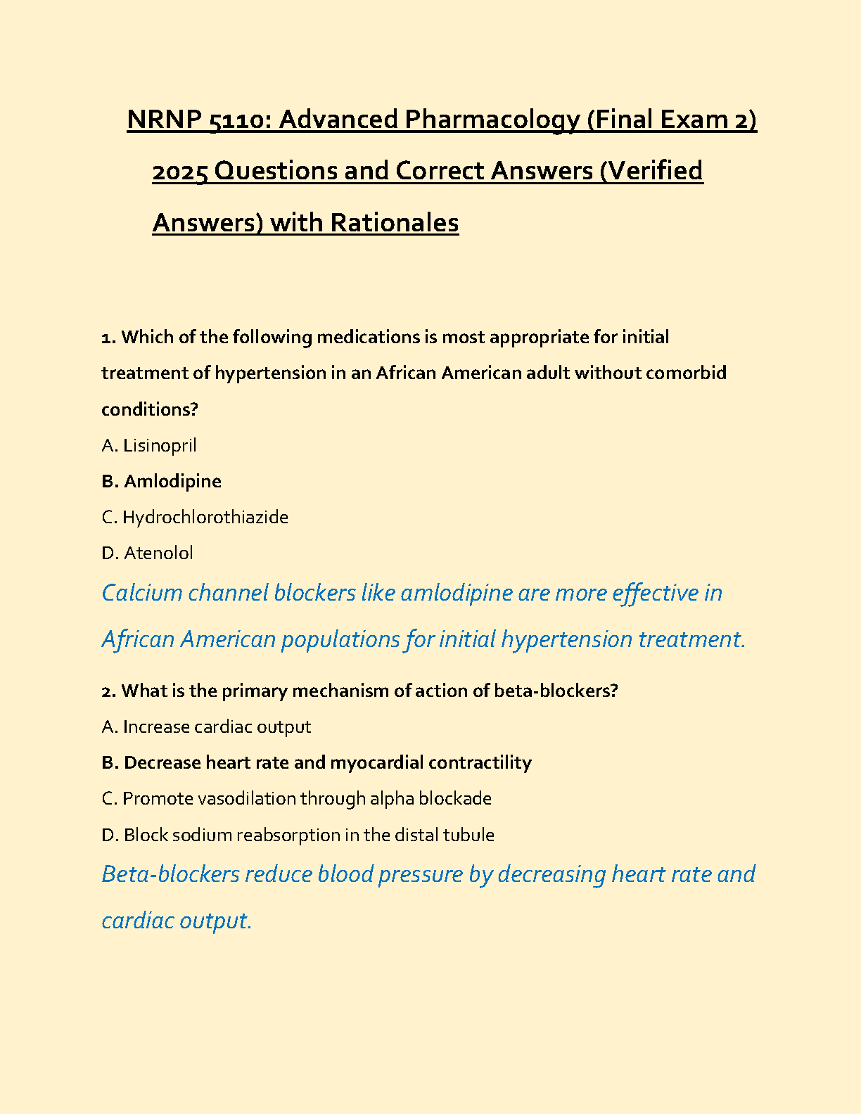 NRNP 5110 Advanced Pharmacology Final Exam 2 Test Bank (2025/2026) | Rosenthal & Burchum, Lehne's 2nd Ed | Questions with Verified Rationales