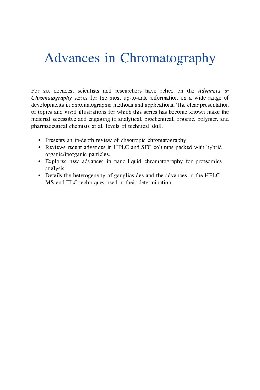 Unlock success in your analytical chemistry course with the latest 2025/2026 edition of 'Advances in Chromatography, Volume 60,' expertly edited by Nelu Grinberg and Peter W. Carr. This comprehensive guide delves into the most current techniques and breakthroughs in separation science. It is meticulously structured to serve as the ultimate study companion, ensuring you grasp complex concepts and are fully prepared to pass your exams on the very first try, eliminating the need for costly resits. Master the principles of modern chromatography and secure top grades.