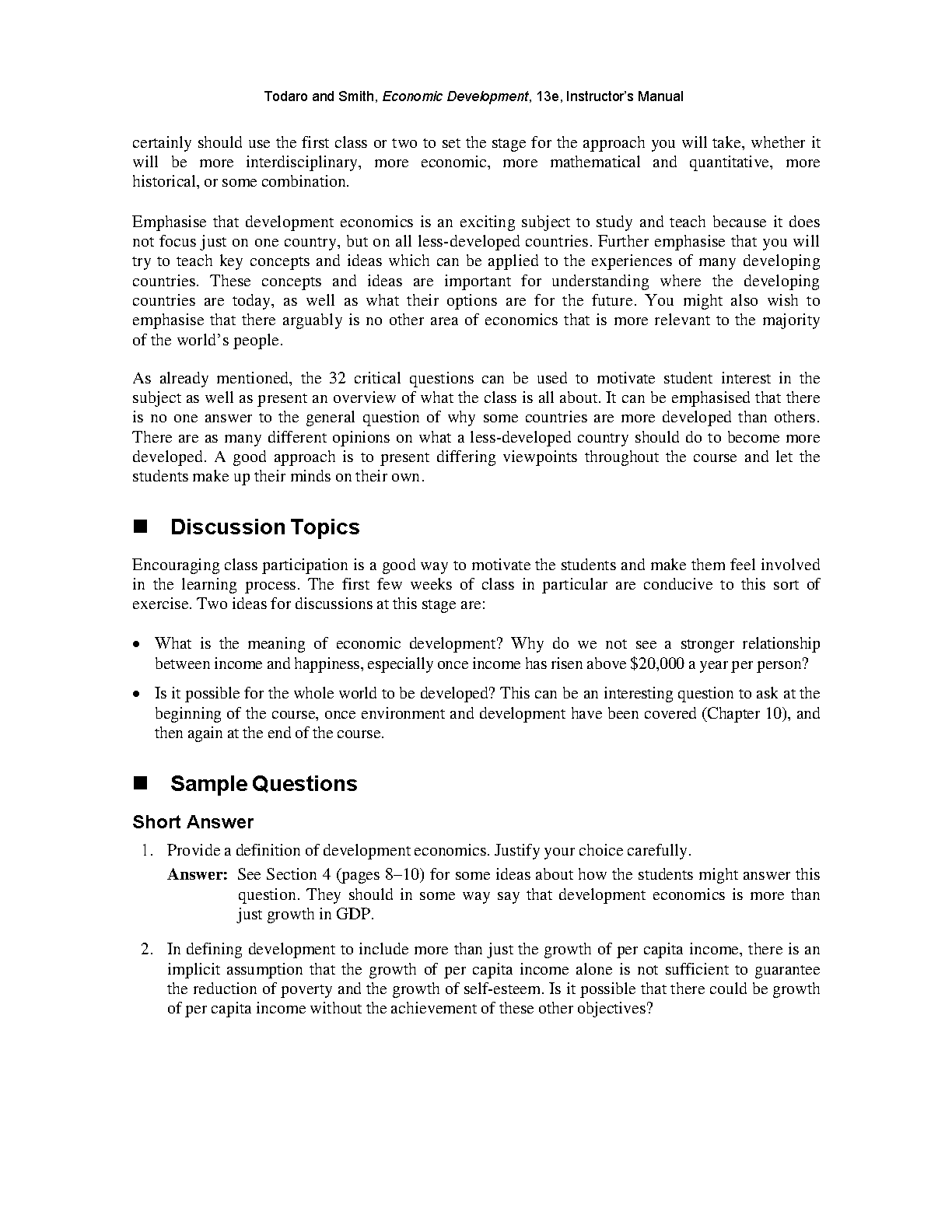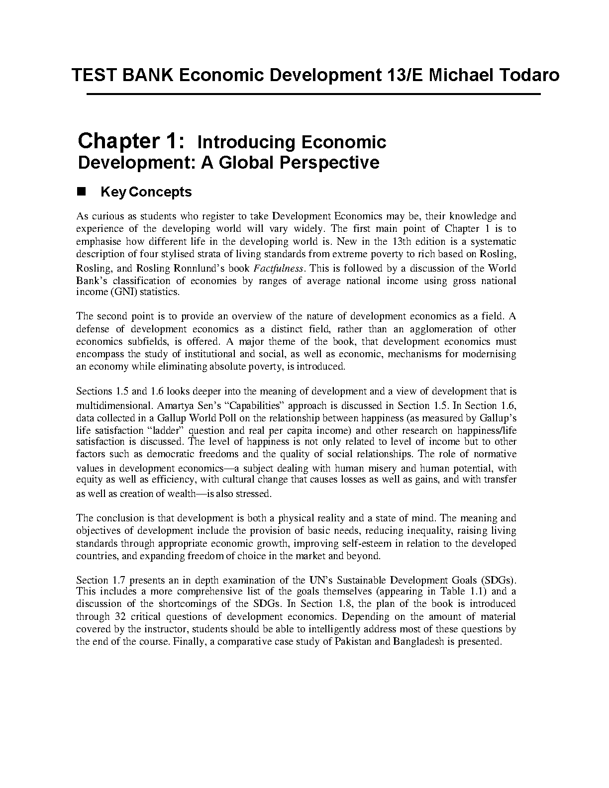 Test Bank for Economic Development, 13th Edition by Michael P. Todaro and Stephen C. Smith