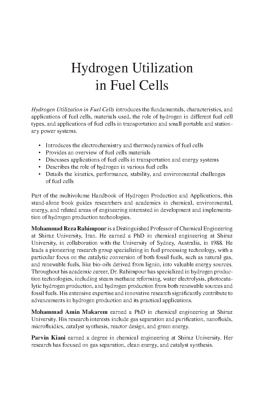 Handbook of Hydrogen Utilization in Fuel Cells, 1st Edition by Rahimpour, Makarem & Kiani | 2025/2026 Exam Success Guide