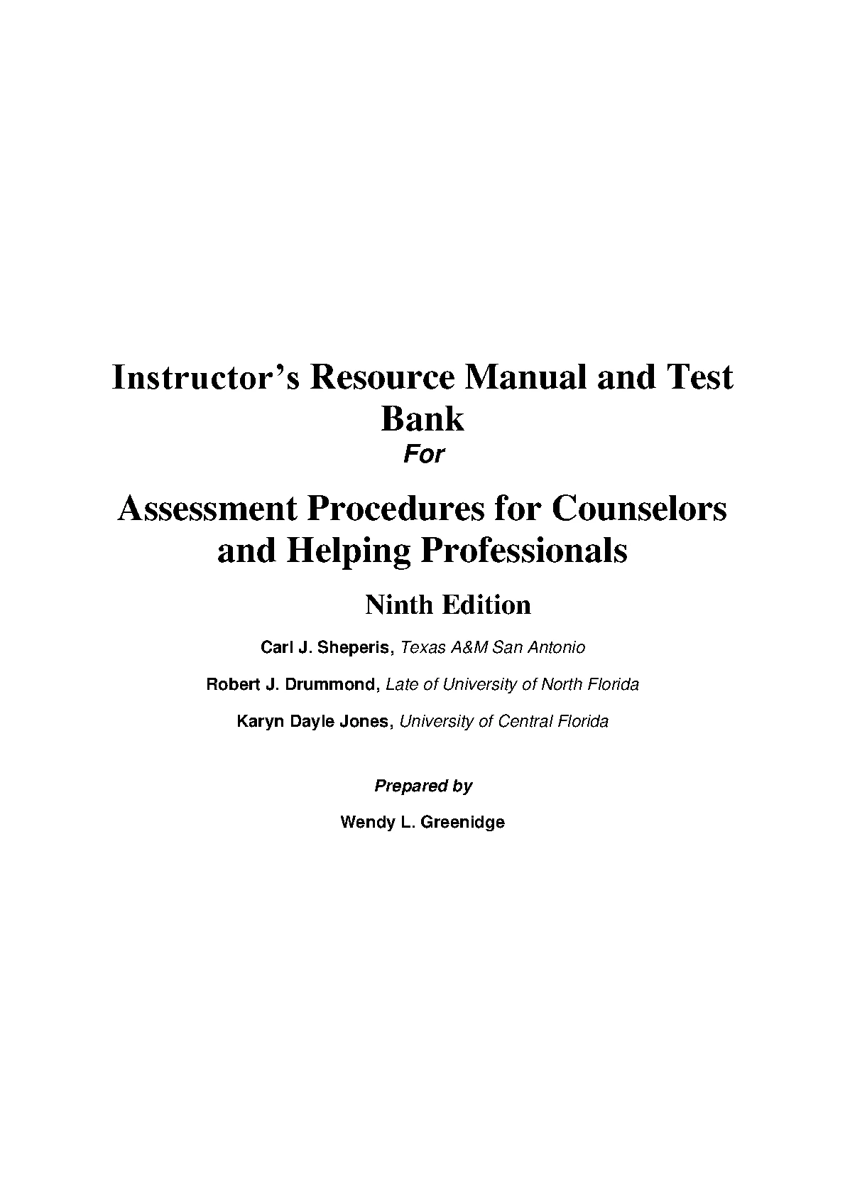 Instructor’s Resource Manual and Test Bank For Assessment Procedures for Counselors and Helping Professionals 9TH Edition Carl J. Sheperis, Robert J. Drummond, Karyn Dayle Jones,