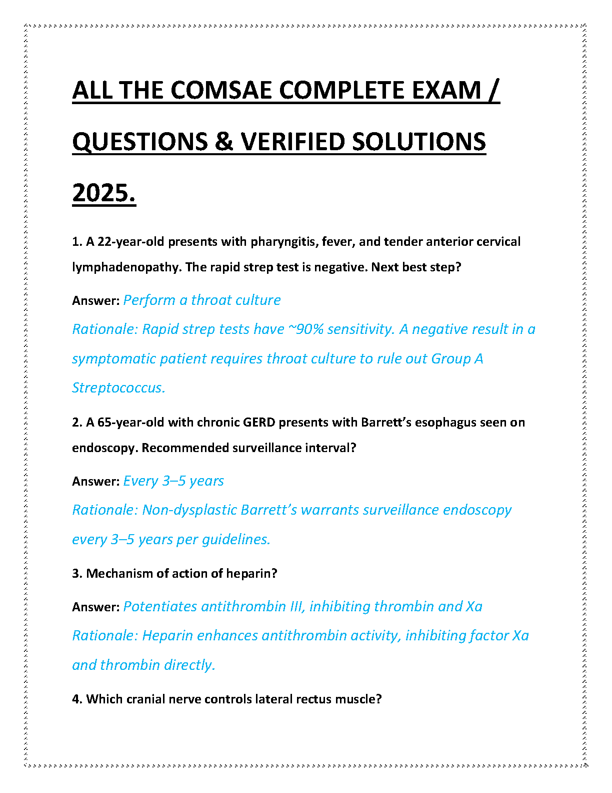 Ace your osteopathic medical exams with our comprehensive COMSAE Complete Exam Test Bank for 2025. This essential study guide features a full collection of exam-style questions, each paired with a verified solution and a detailed rationale. Designed to mirror the actual exam format, this resource is your key to mastering the material, identifying knowledge gaps, and building confidence. Prepare effectively, understand the 'why' behind each answer, and ensure you pass your COMSAE on the first attempt, avoiding costly and stressful resits. Get the edge you need for success in your 2025/2026 academic journey.