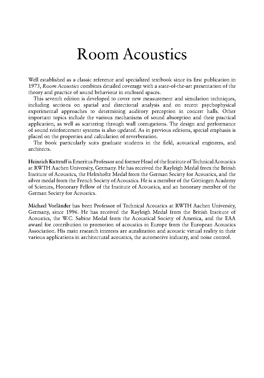 Room Acoustics, 7th Edition by Heinrich Kuttruff & Michael Vorländer - 2025/2026 Exam Success Guide