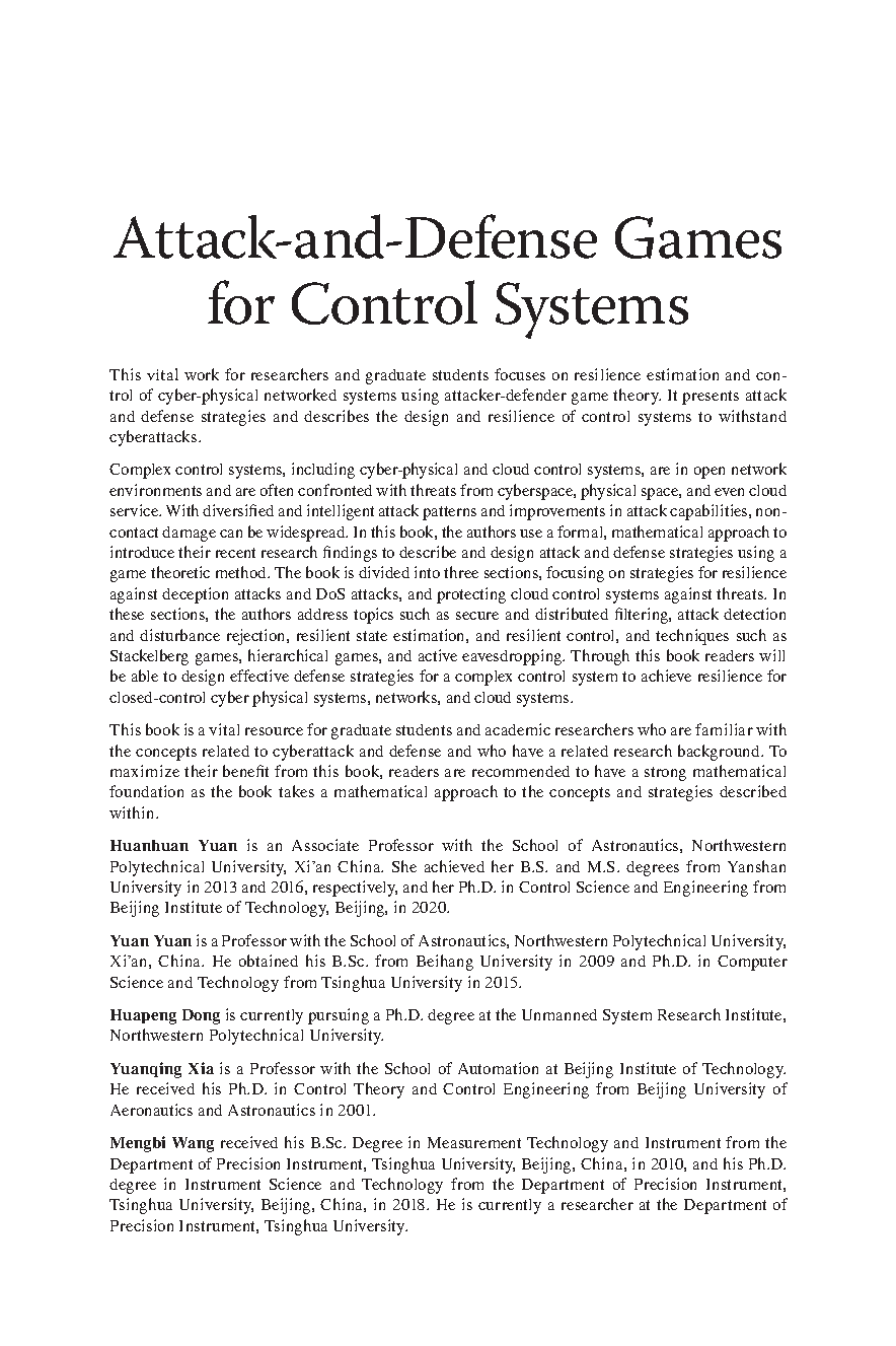 Attack-and-Defense Games for Control Systems: Analysis and Synthesis, 1st Edition by Huanhuan Yuan, Yuan Yuan, Huapeng Dong, Yuanqing Xia, and Mengbi Wang | 2025/2026 Exam Success Guide
