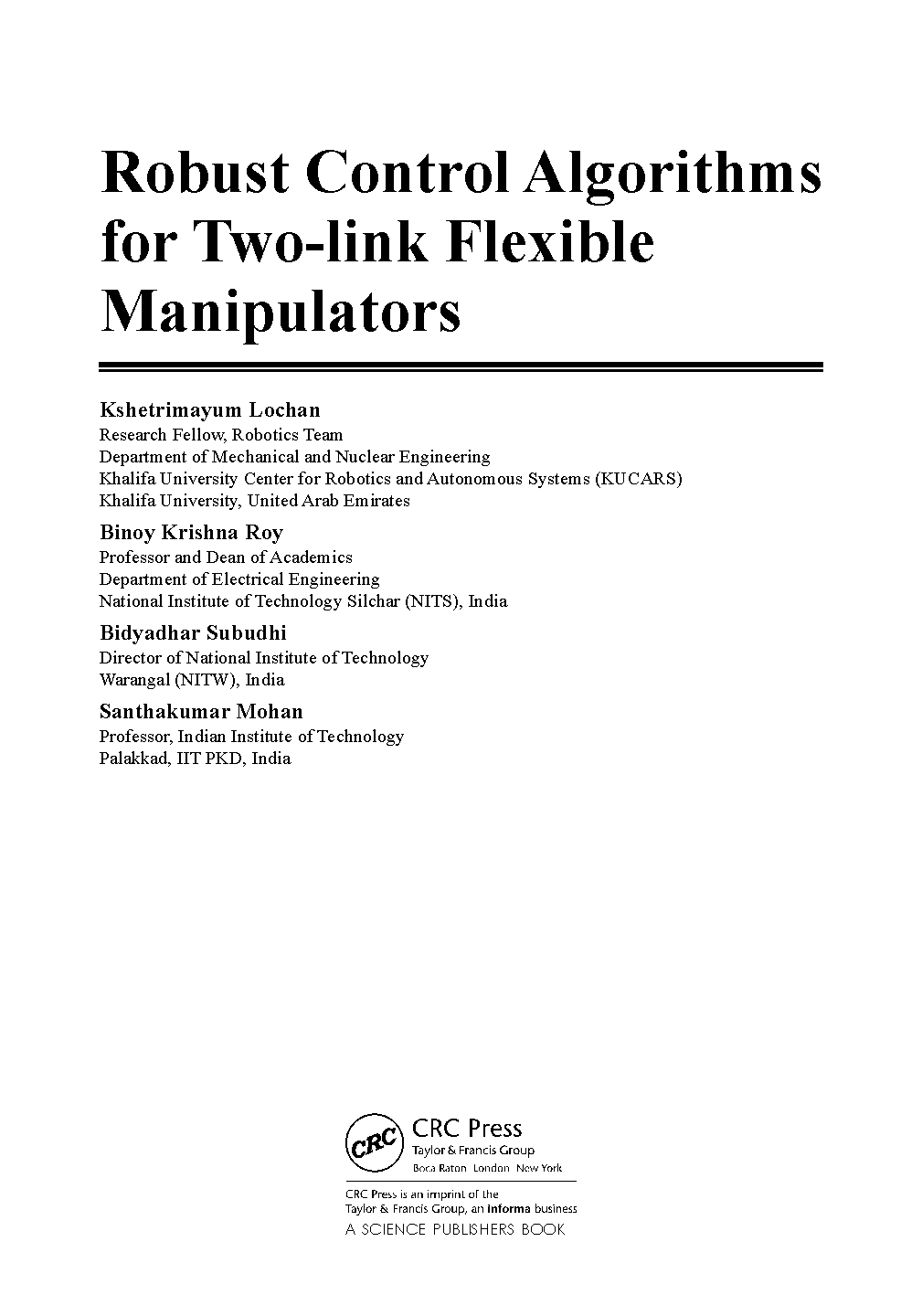 Robust Control Algorithms for Two-link Flexible Manipulators, 1st Edition by Kshetriumayum Lochan, Binoy Krishna Roy, Bidyadhar Subudhi, & Santhakumar Mohan | 2025-2026 Exam Success Guide