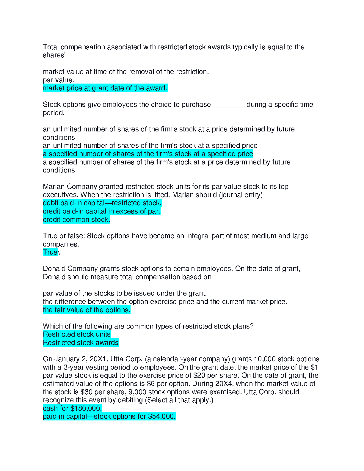 Test Bank for Intermediate Accounting, 11th Edition by J. David Spiceland, Mark W. Nelson, and Wayne B. Thomas | Chapter 19 ACCTG 472 Share-Based Compensation