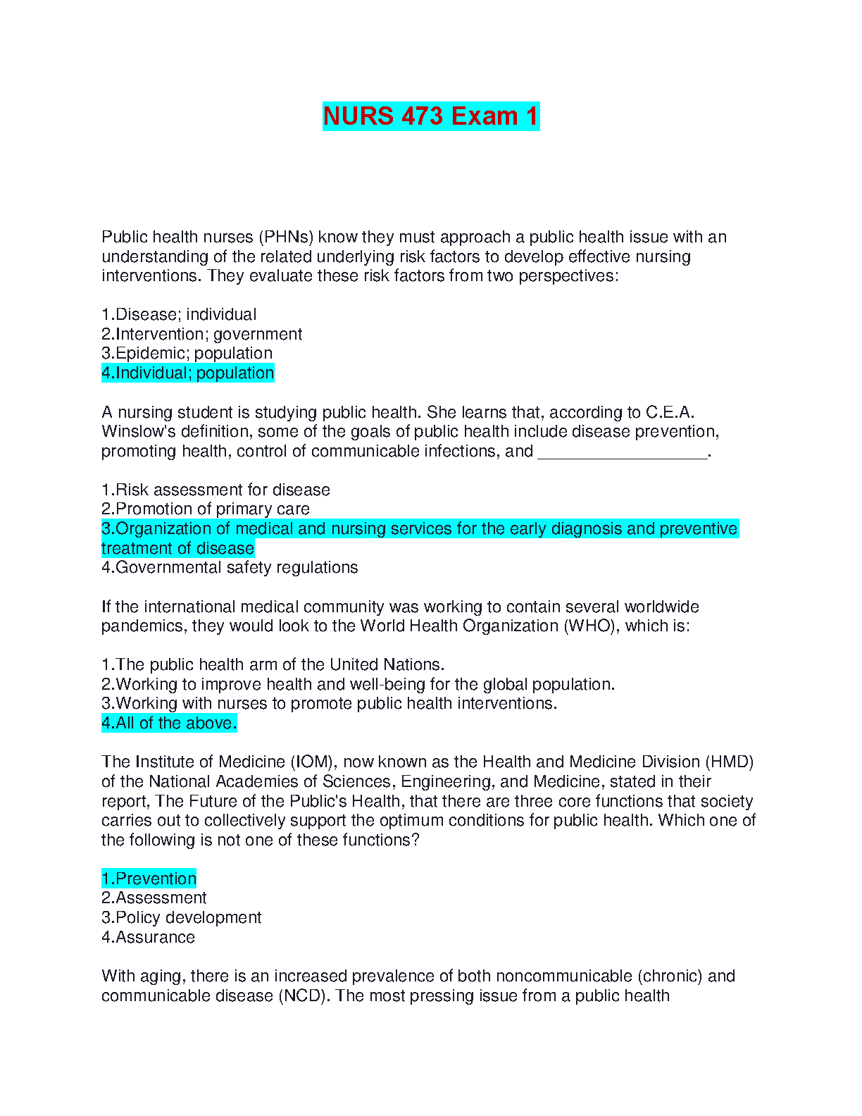 NURS 473 Public Health Nursing Exam 1 Test Bank | Stanhope & Lancaster, 11th Edition Questions and Verified Answers