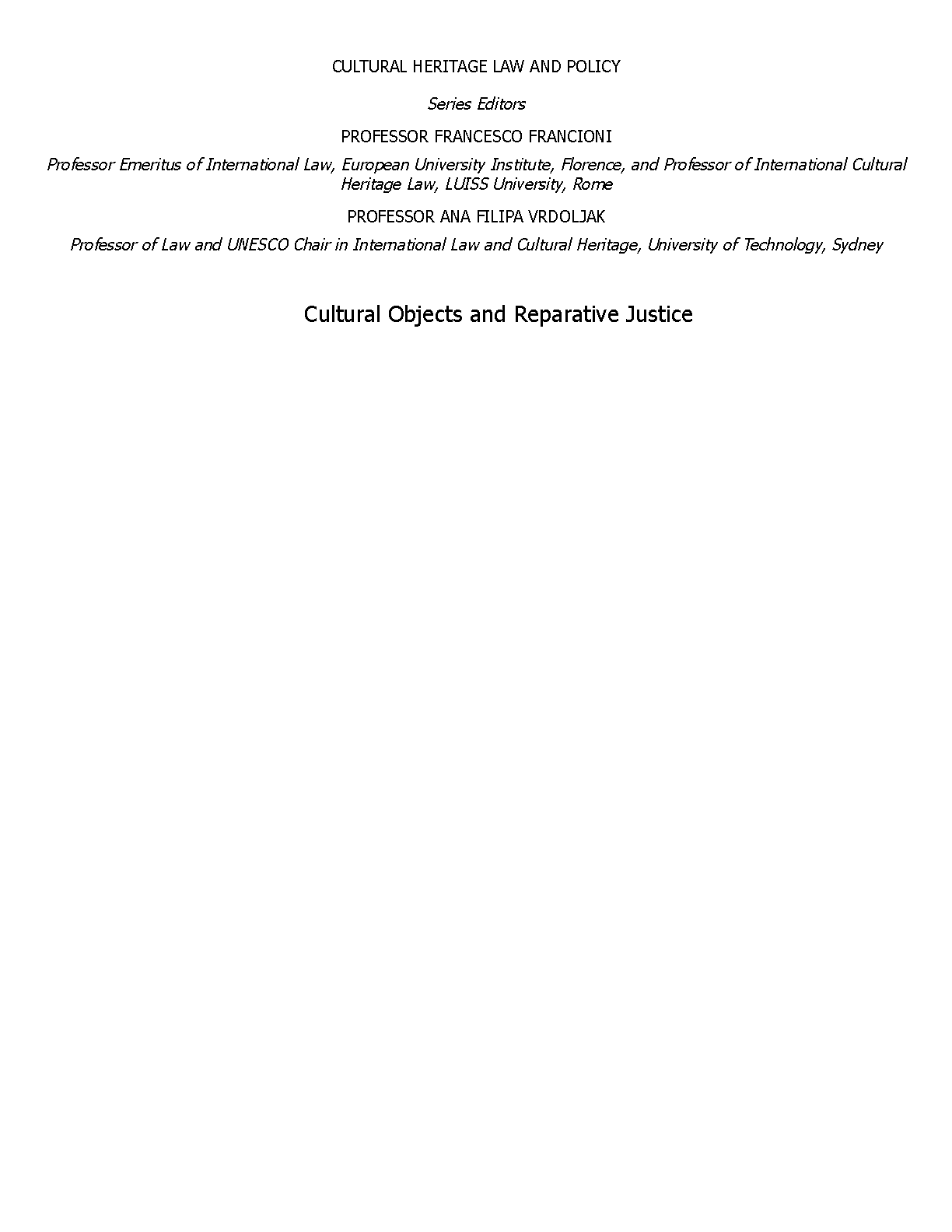 Cultural Objects and Reparative Justice, 1st Edition by Patty Gerstenblith - Latest 2025/2026 Study Guide for Exam Success