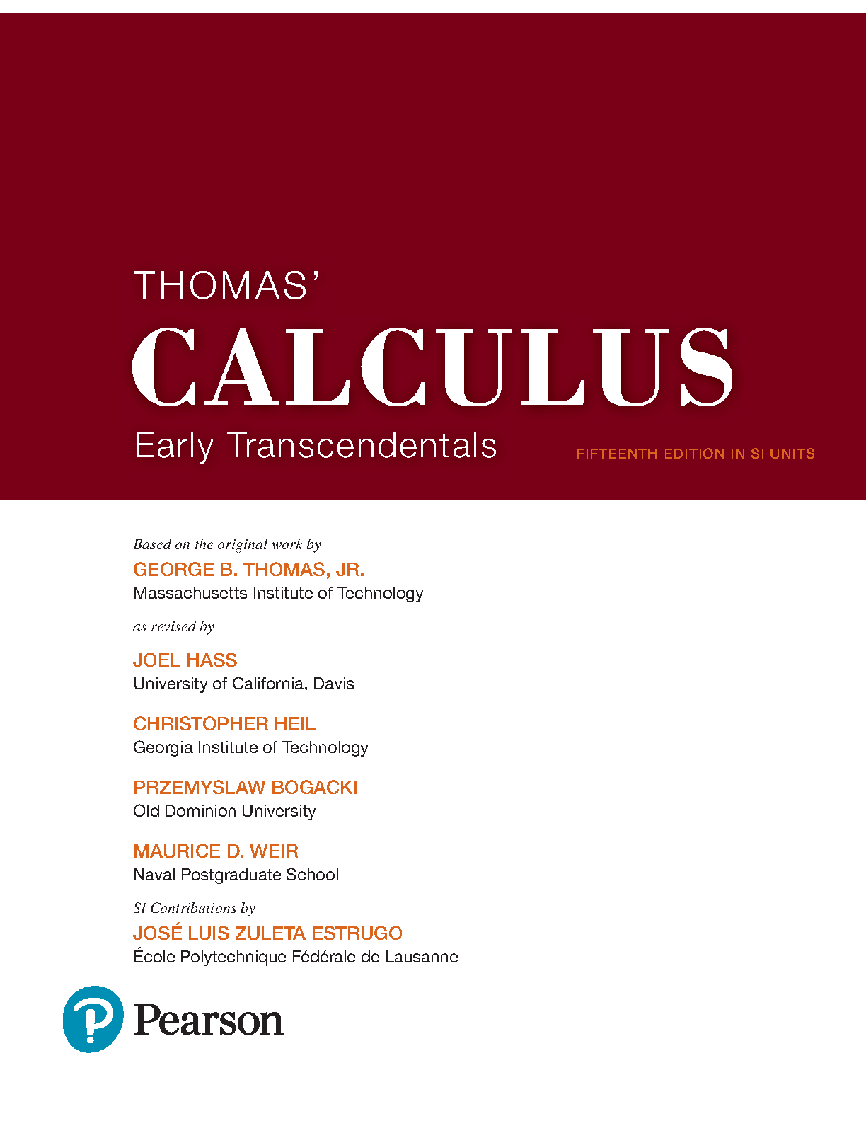 Test Bank for Thomas' Calculus: Early Transcendentals, Global Edition in SI Units, 15th Edition by Joel R. Hass, Christopher E. Heil, Przemyslaw Bogacki, Maurice D. Weir