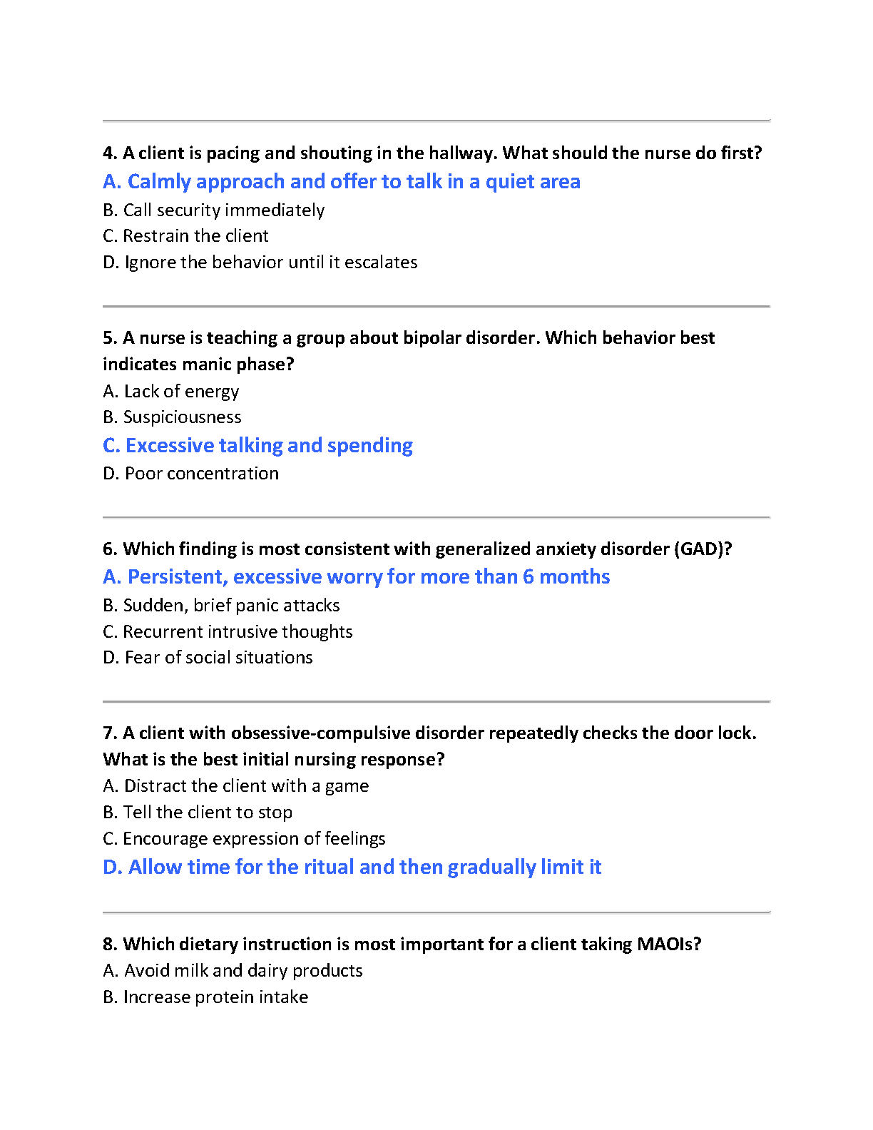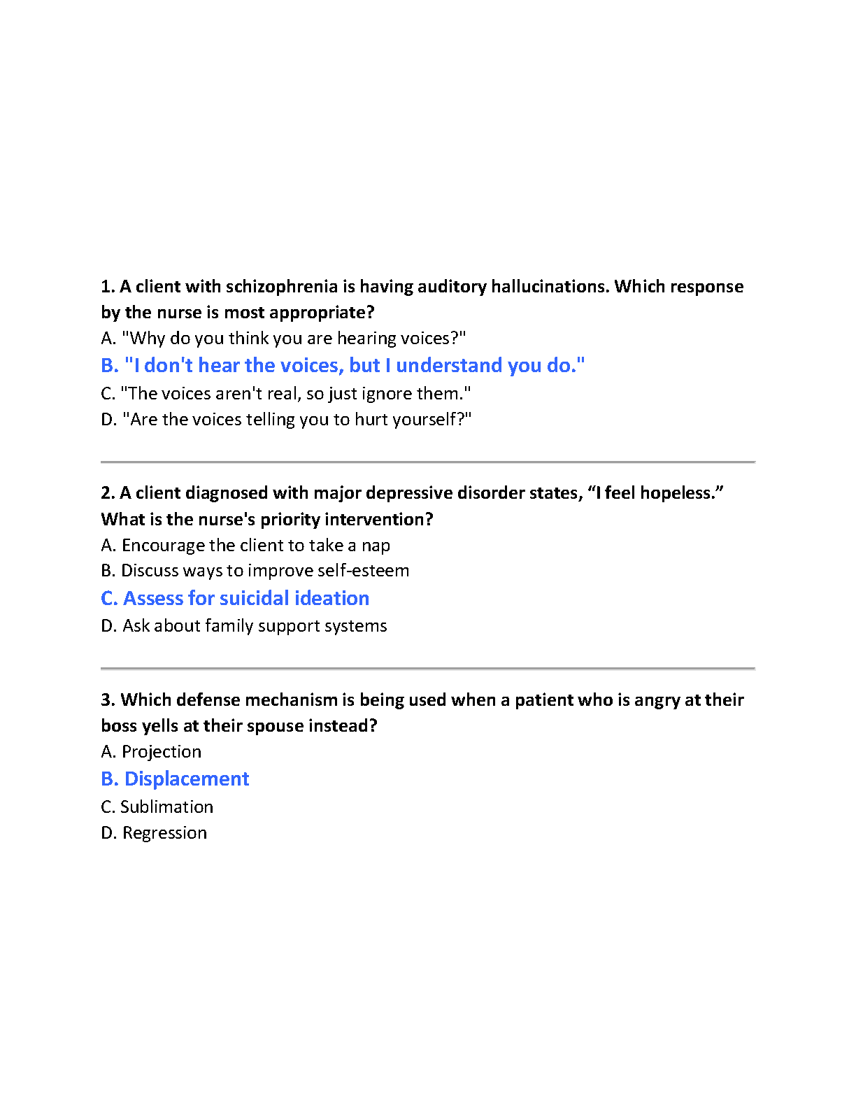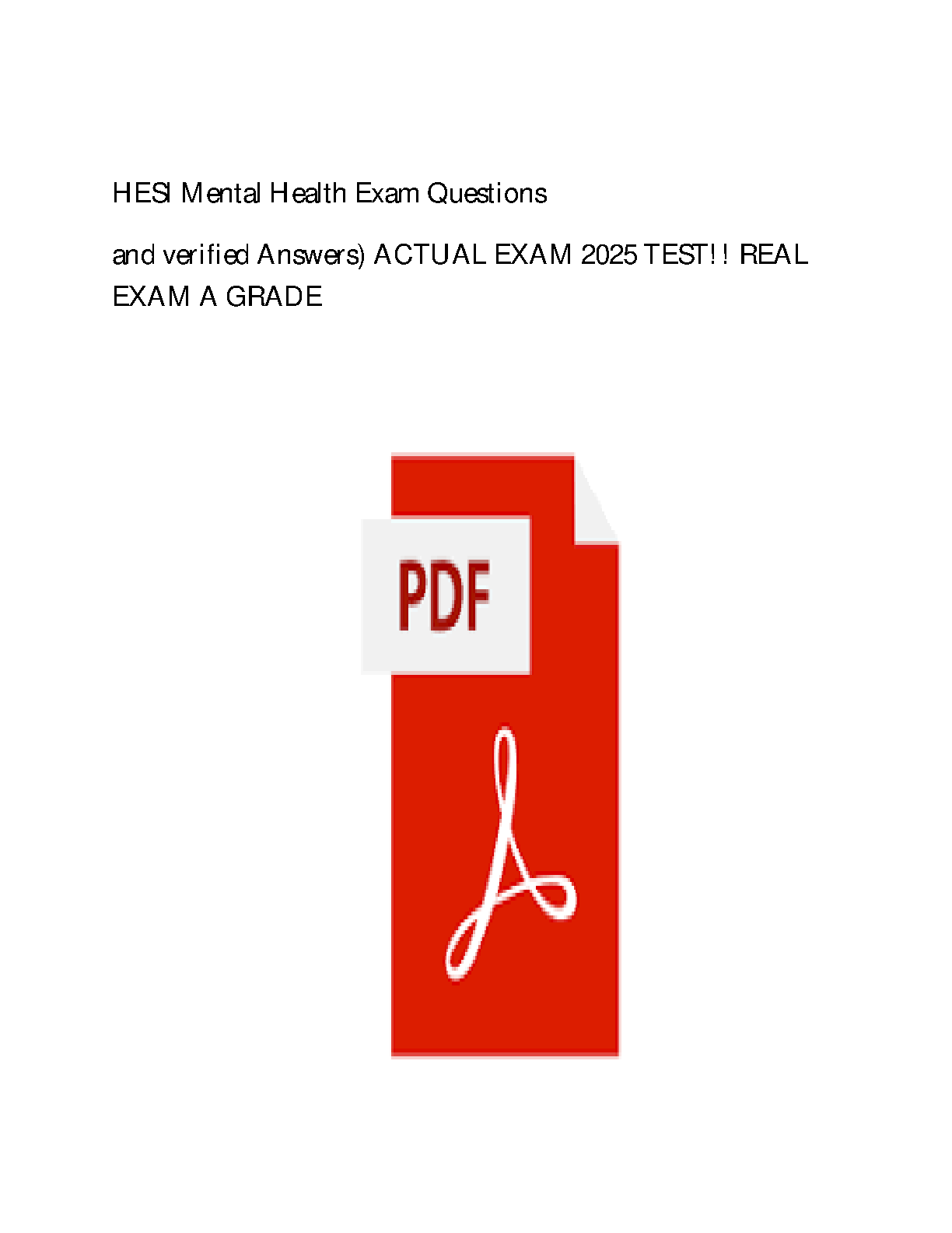 HESI Mental Health 2025 Exam: Verified Test Bank with Questions & Answers for A-Grade Success