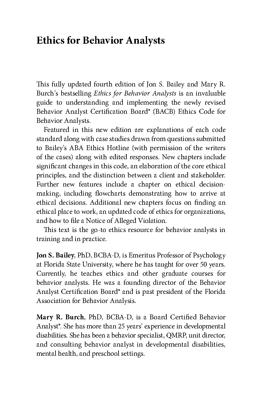 Master your certification exams with the leading 2025/2026 guide for 'Ethics for Behavior Analysts, 4th Edition' by Jon S. Bailey and Mary R. Burch. This resource is tailored to help students and professionals navigate complex ethical dilemmas and thoroughly understand the BACB's compliance code. With clear explanations and practical case studies, this guide is your key to passing exams on the first attempt, eliminating the need for resits. Excel in your career by building a strong ethical foundation with this essential study companion.