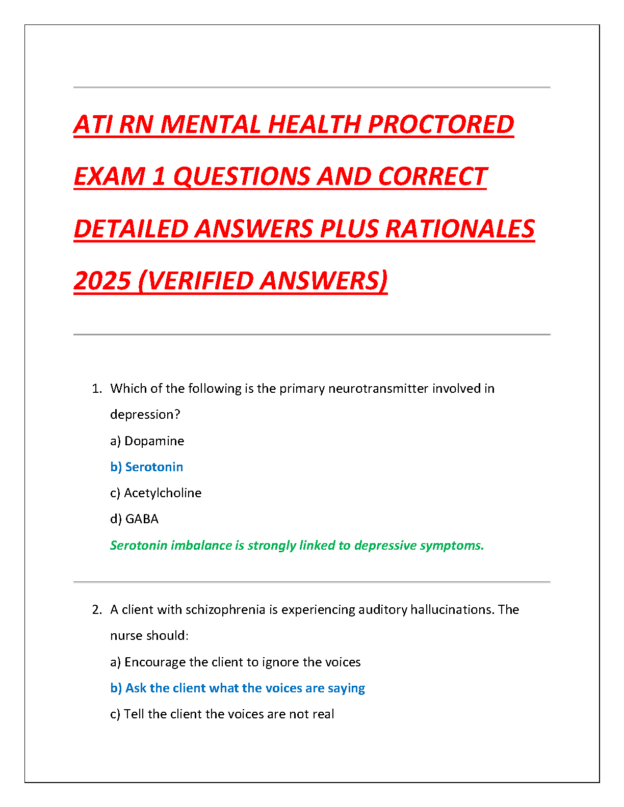 ATI RN Mental Health Proctored Exam 2025 Test Bank: Comprehensive Q&A with Rationales by ATI Nursing Education - Pass on Your First Try!