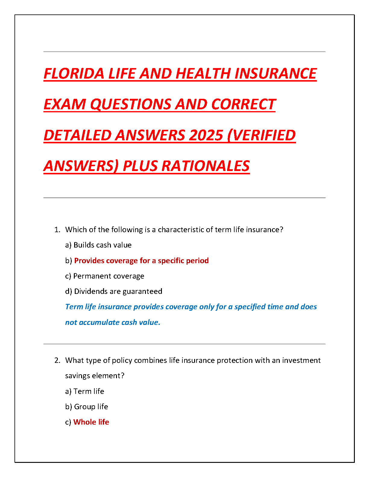 Ace the Florida Life & Health Insurance Exam 2025-2026: Comprehensive Test Bank with Verified Questions, In-Depth Answers, and Rationales for a First-Attempt Pass.