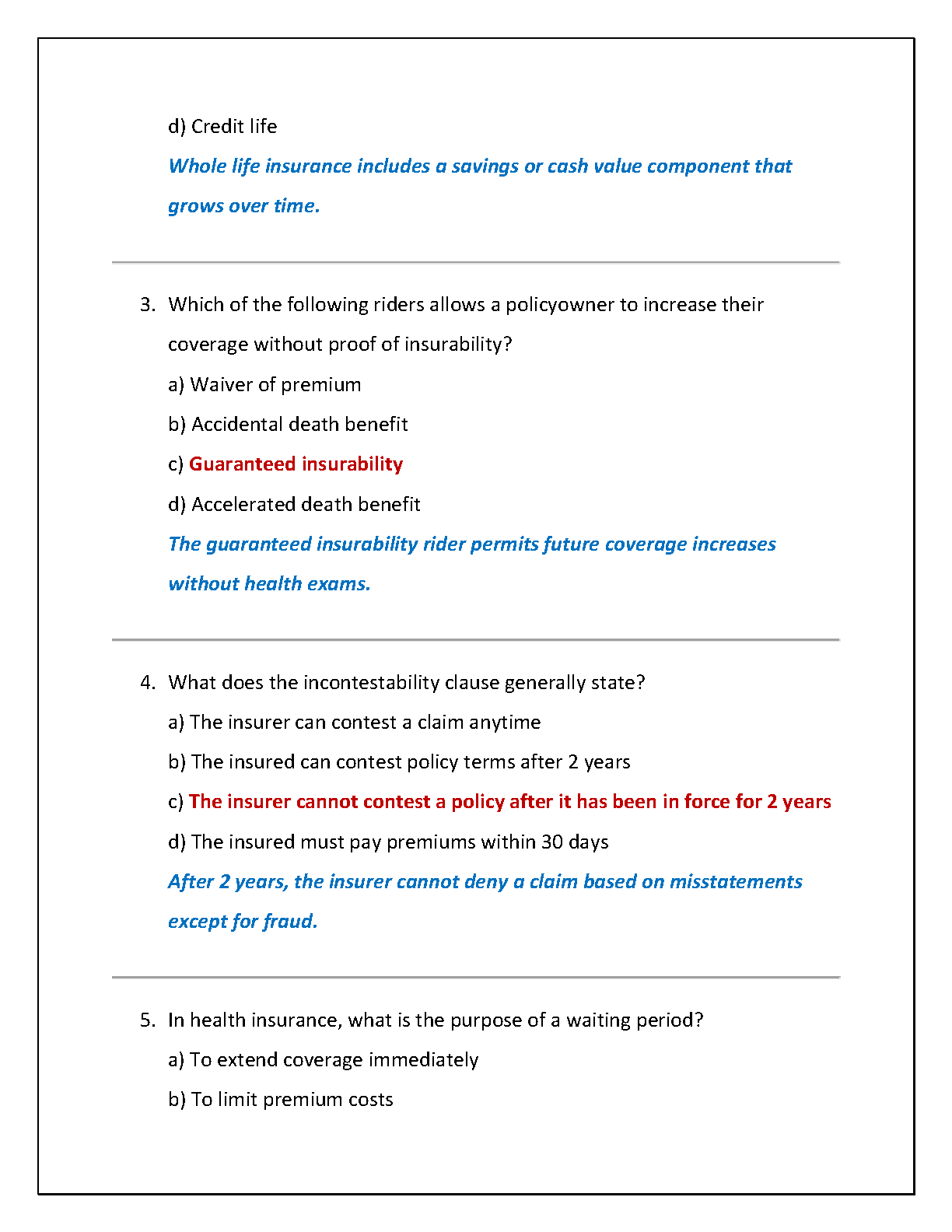 Unlock your career as a licensed insurance agent in Florida with our ultimate study resource! This comprehensive test bank for the Florida Life and Health Insurance Exam is fully updated for the 2025-2026 testing cycle. It features an extensive collection of practice questions that closely mirror the actual exam's format and content. What sets this guide apart are the detailed rationales provided for every answer. Don't just learn *what* the right answer is—understand *why* it's correct, solidifying your knowledge and building the confidence needed to pass your exam with ease on the first try. This is the essential tool for mastering the material and acing your Florida insurance licensing exam.