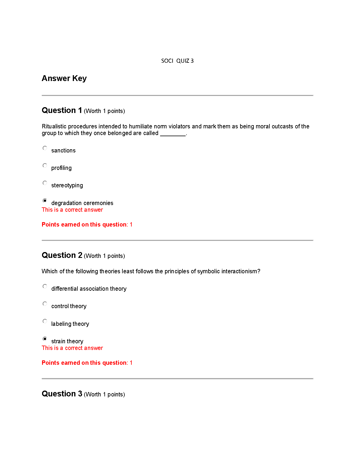 Unlock the ultimate study advantage with the verified Test Bank for SOCI Quiz 3, expertly aligned with 'Sociology: A Down-to-Earth Approach,' 14th Edition by James M. Henslin. This essential resource provides all the correct answers, helping you master key sociological concepts such as degradation ceremonies, strain theory, and the principles of symbolic interactionism. Ideal for exam preparation and self-assessment, this answer key is your key to boosting course comprehension and achieving outstanding grades. Download now to ace your sociology quizzes!
