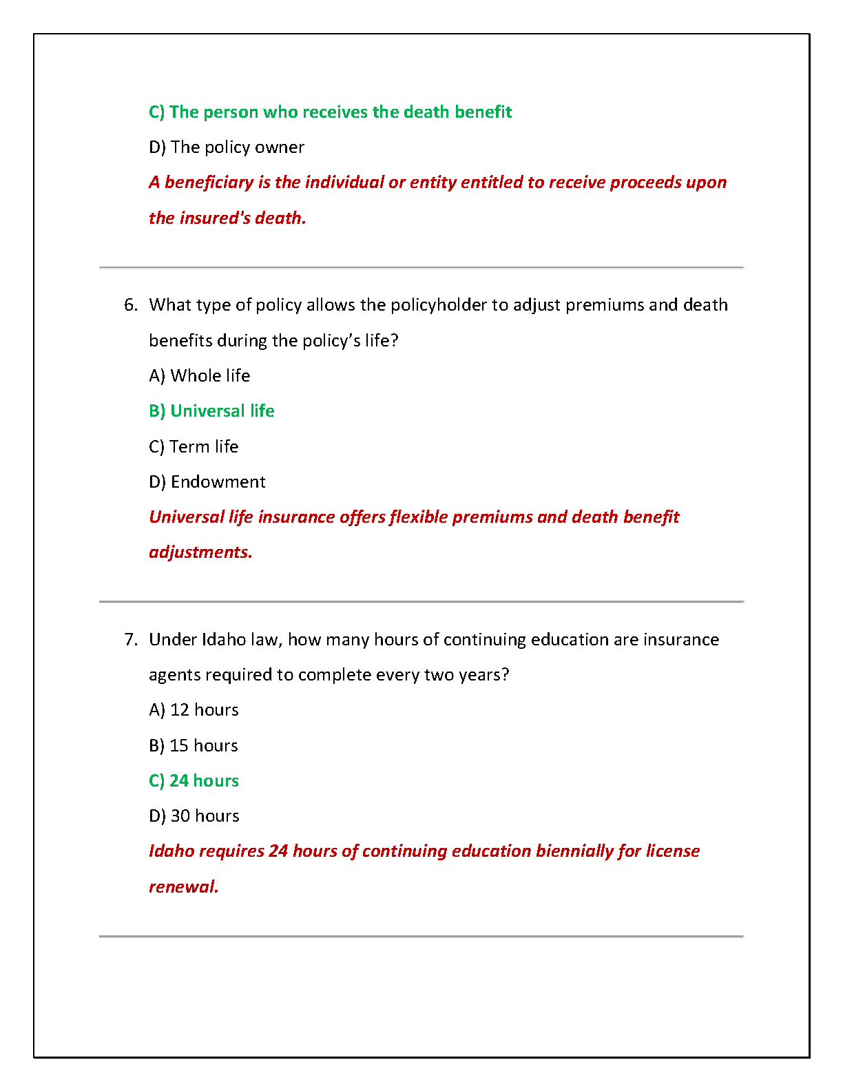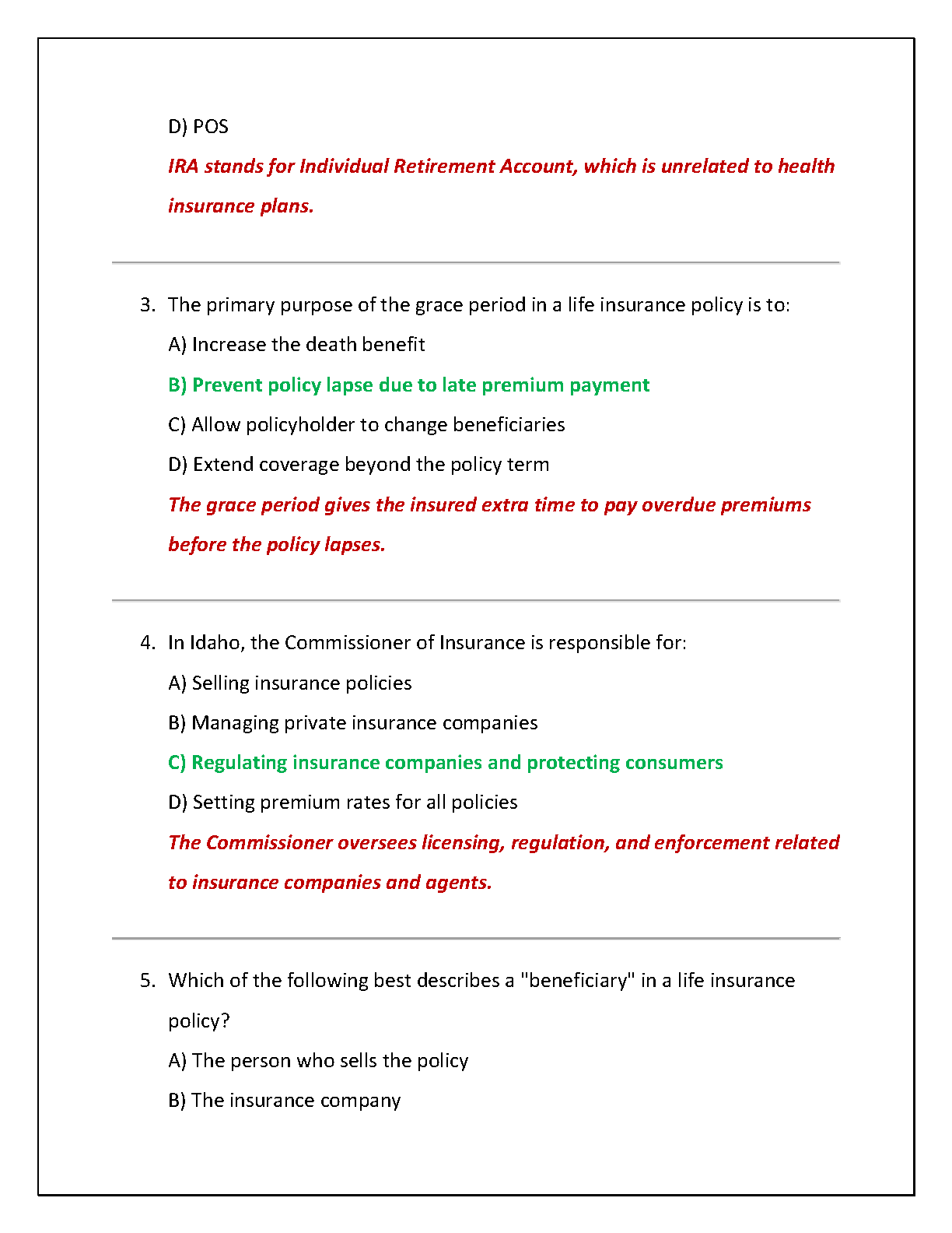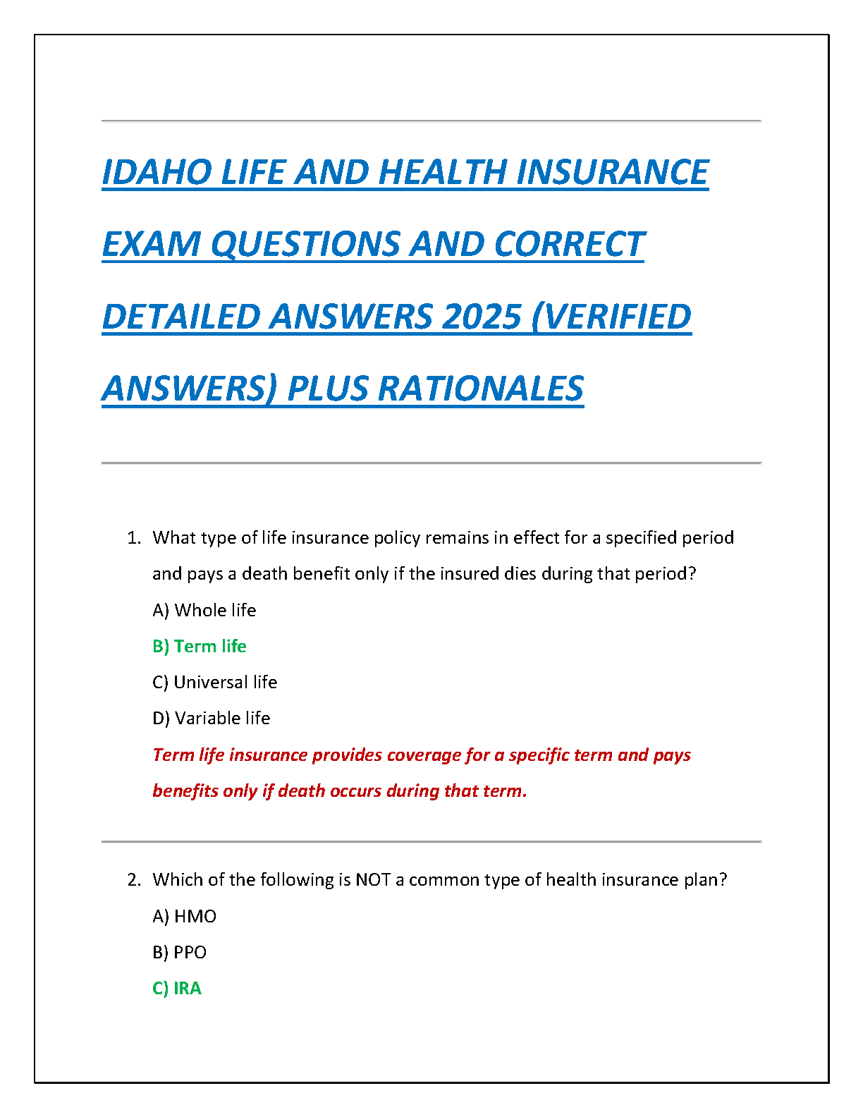 Idaho Life and Health Insurance Exam 2025 Test Bank: Comprehensive Q&A with Rationales to Pass on Your First Try