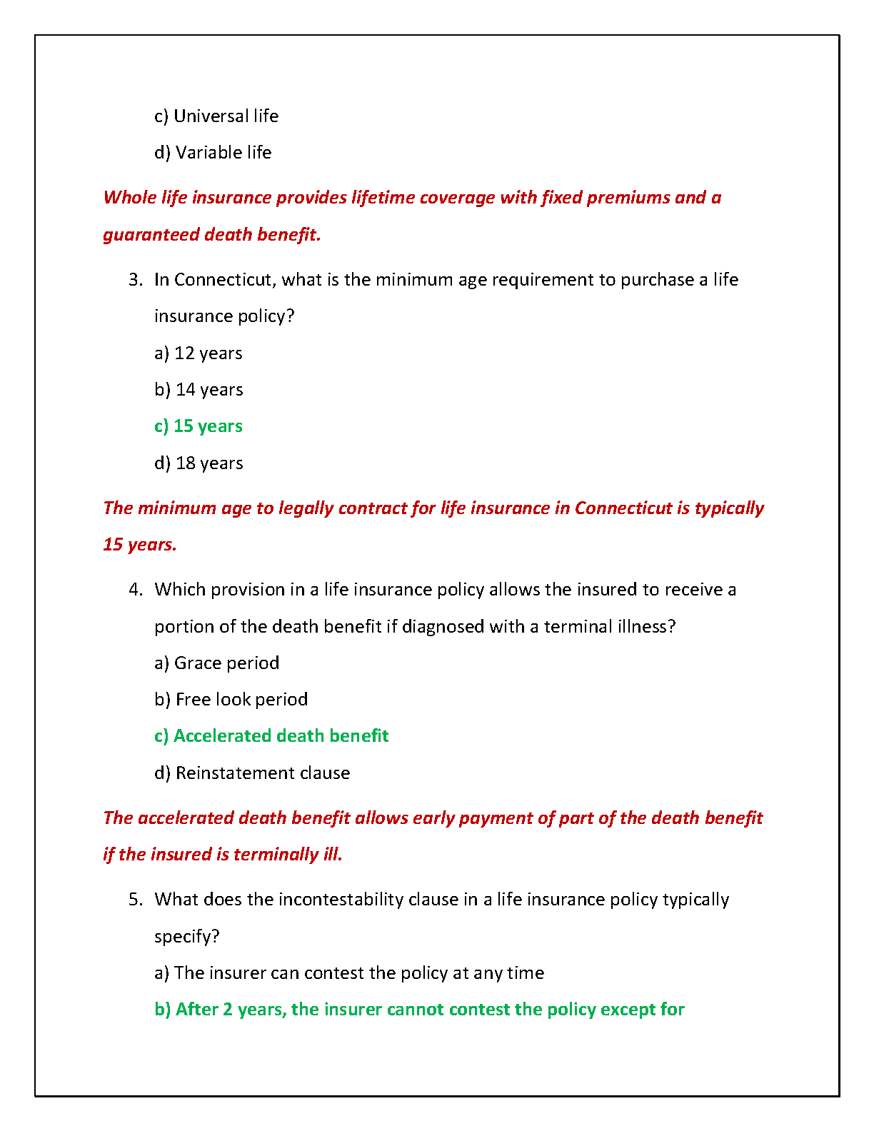 Ace your Connecticut Life and Health Insurance exam on the first try with our comprehensive 2025 Test Bank. This essential study guide features a complete collection of practice questions, each paired with a 100% correct, verified answer and a detailed rationale. Our expertly crafted content is designed to give you a deep understanding of the core concepts, ensuring you're fully prepared for the actual test. Stop worrying about resits and start your insurance career with confidence. Get the ultimate resource to master the material and secure your license!