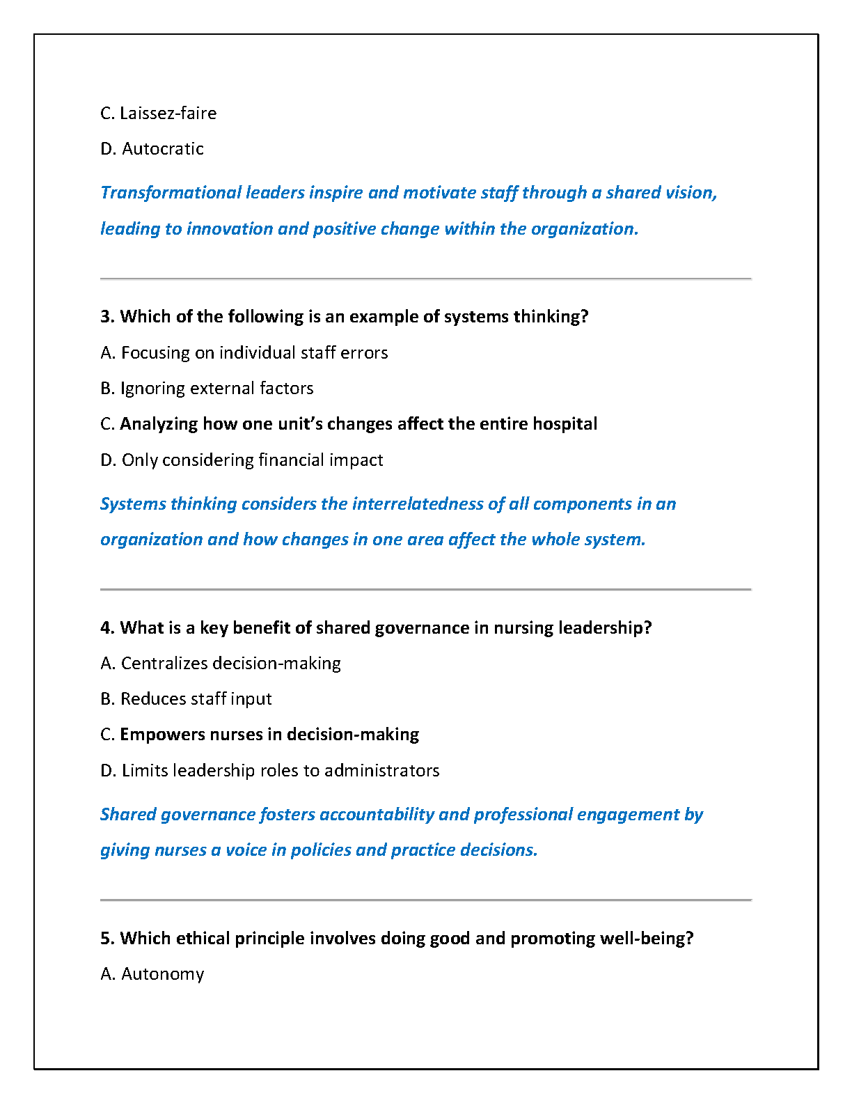 NURS 6053 Interprofessional Organizational & Systems Leadership Final Exam Test Bank 2025 | Verified Questions, Answers & Rationales | Walden University
