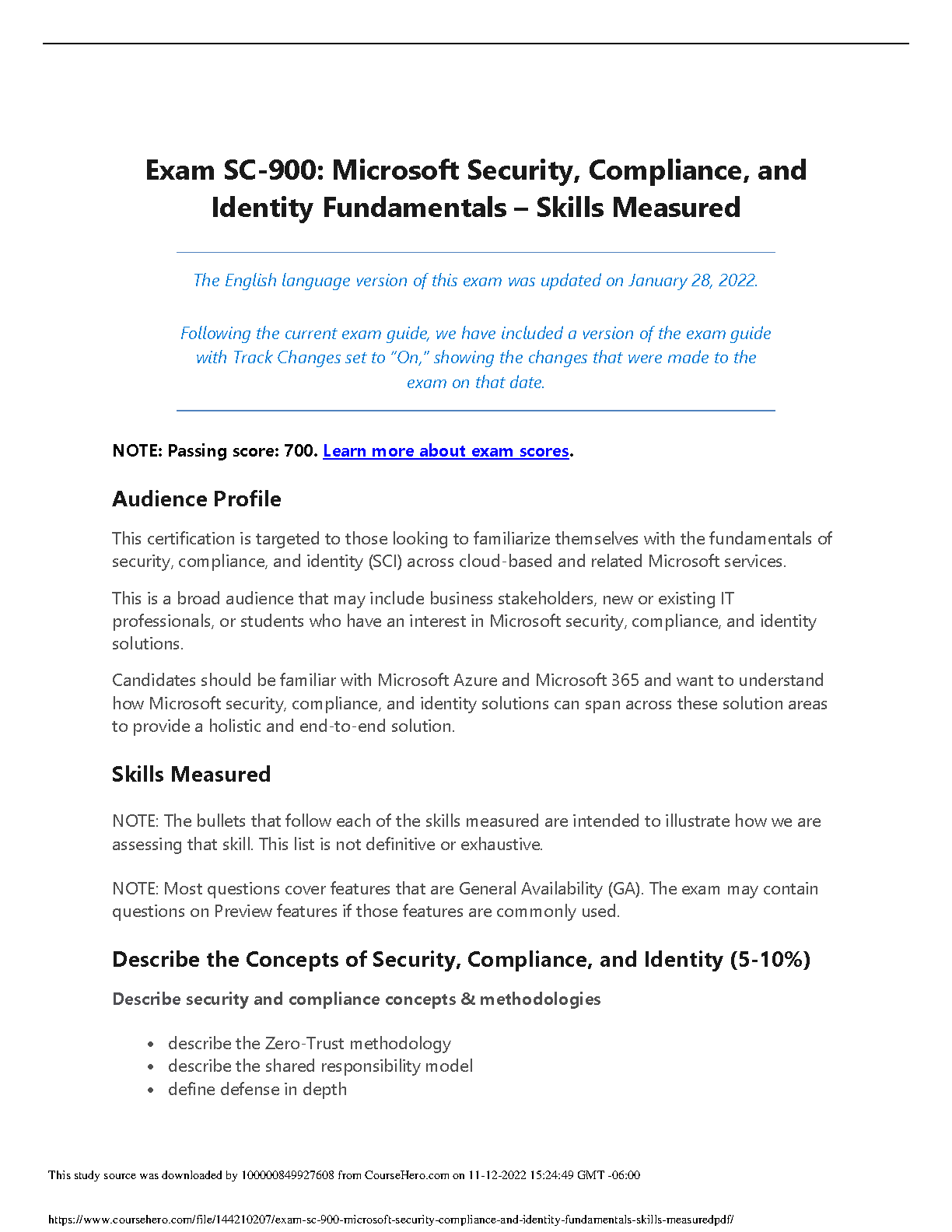 Achieve certification success with our premier study guide for the Exam SC-900: Microsoft Security, Compliance, and Identity Fundamentals. This up-to-date 2025/2026 resource is meticulously crafted to ensure you pass on your first try, avoiding the stress and expense of resits. Our guide breaks down all the essential 'Skills Measured' for the exam, covering key topics such as Zero-Trust methodology, the shared responsibility model, and defense in depth. Ideal for students and IT professionals aiming to master Microsoft Azure and Microsoft 365 security, this document provides the ultimate preparation for exam success.