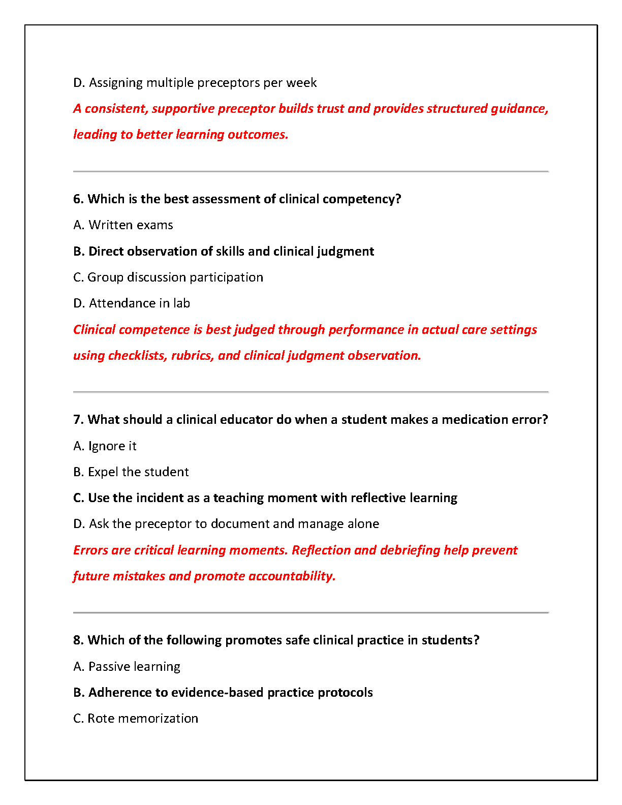 NURS 6341 Specialty in Clinical Nursing Education Test Bank - Walden University Final Exam with Questions, Answers & Rationales 2025/2026
