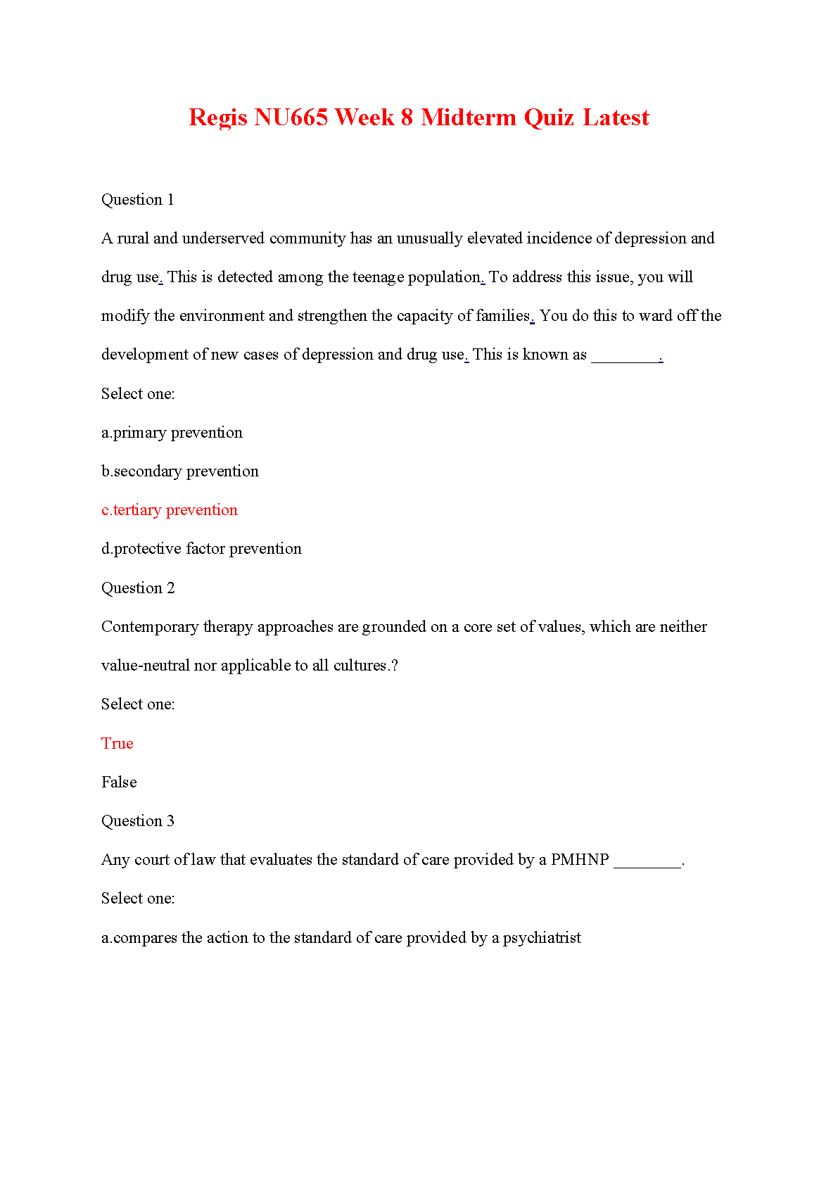 Ace Your PMHNP Exams: Regis NU665 Week 8 Midterm Quiz Test Bank | Latest 2025/2026 Edition with Verified Answers
