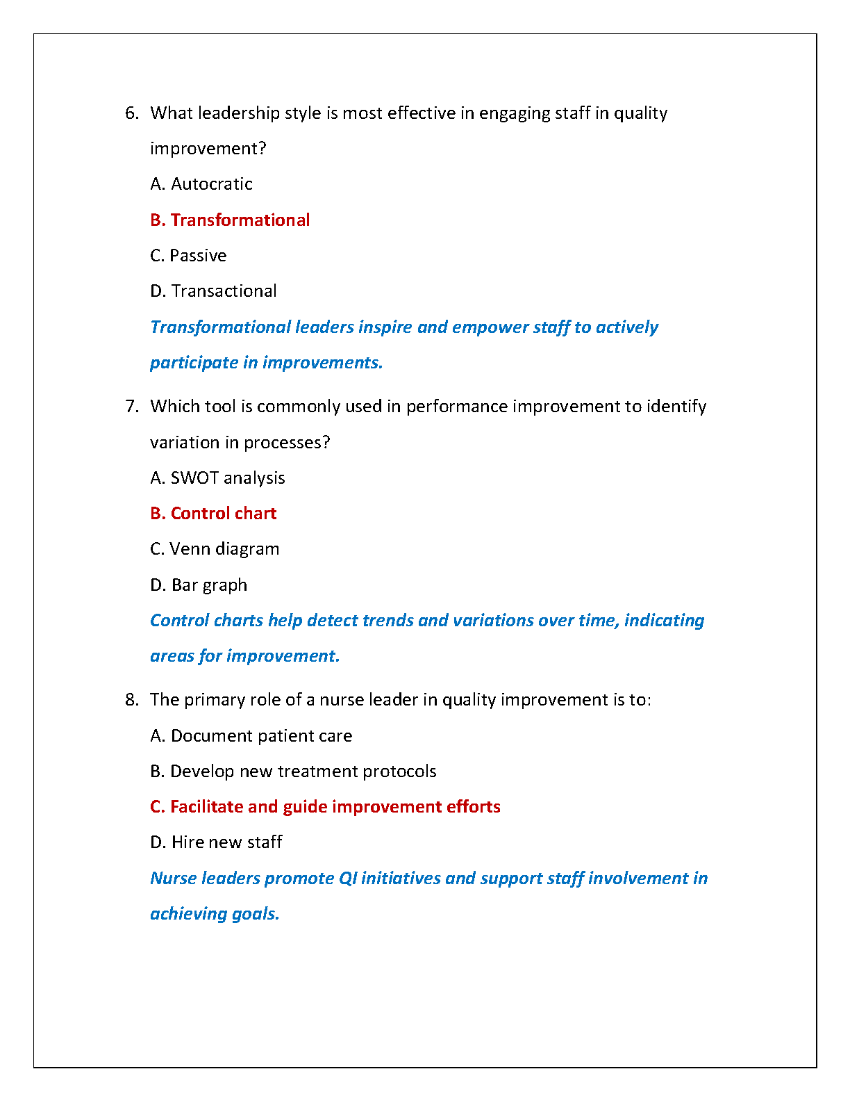 WGU C489 Organizational Systems and Quality Leadership Final Exam 1 Test Bank | 2025/2026 Latest Edition with Verified Questions, Answers & Rationales to Pass First Try