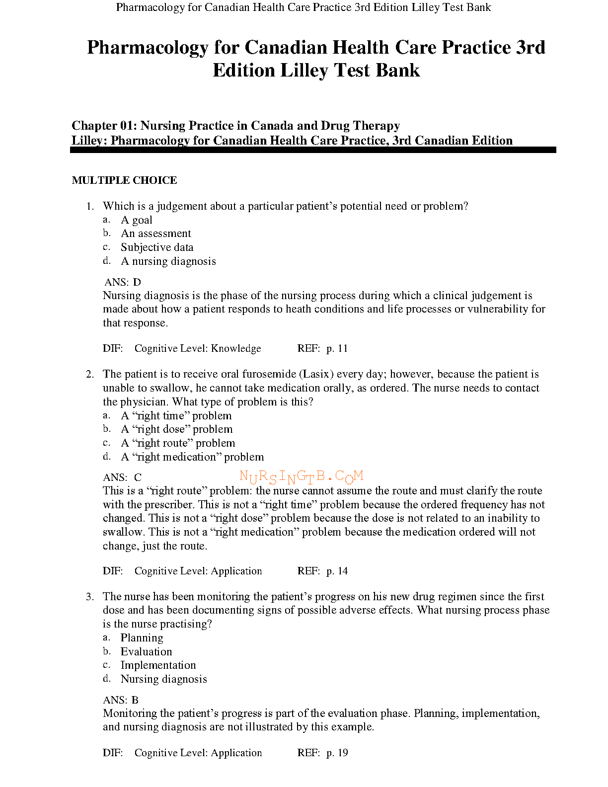 Prepare to excel with the authentic Test Bank for Pharmacology for Canadian Health Care Practice, 3rd Canadian Edition. Authored by Lilley, Collins, Snyder, and Swart, this comprehensive resource is your key to mastering course material. It features a vast array of questions, from multiple-choice to application-based scenarios, mirroring the format of your actual exams. Each question comes with a detailed rationale, helping you understand the 'why' behind the right answer. Spanning all chapters, this study guide allows you to pinpoint your strengths and weaknesses, ensuring you're fully prepared to pass your exams with confidence. Get immediate access and take the first step towards academic success in your Canadian healthcare studies.