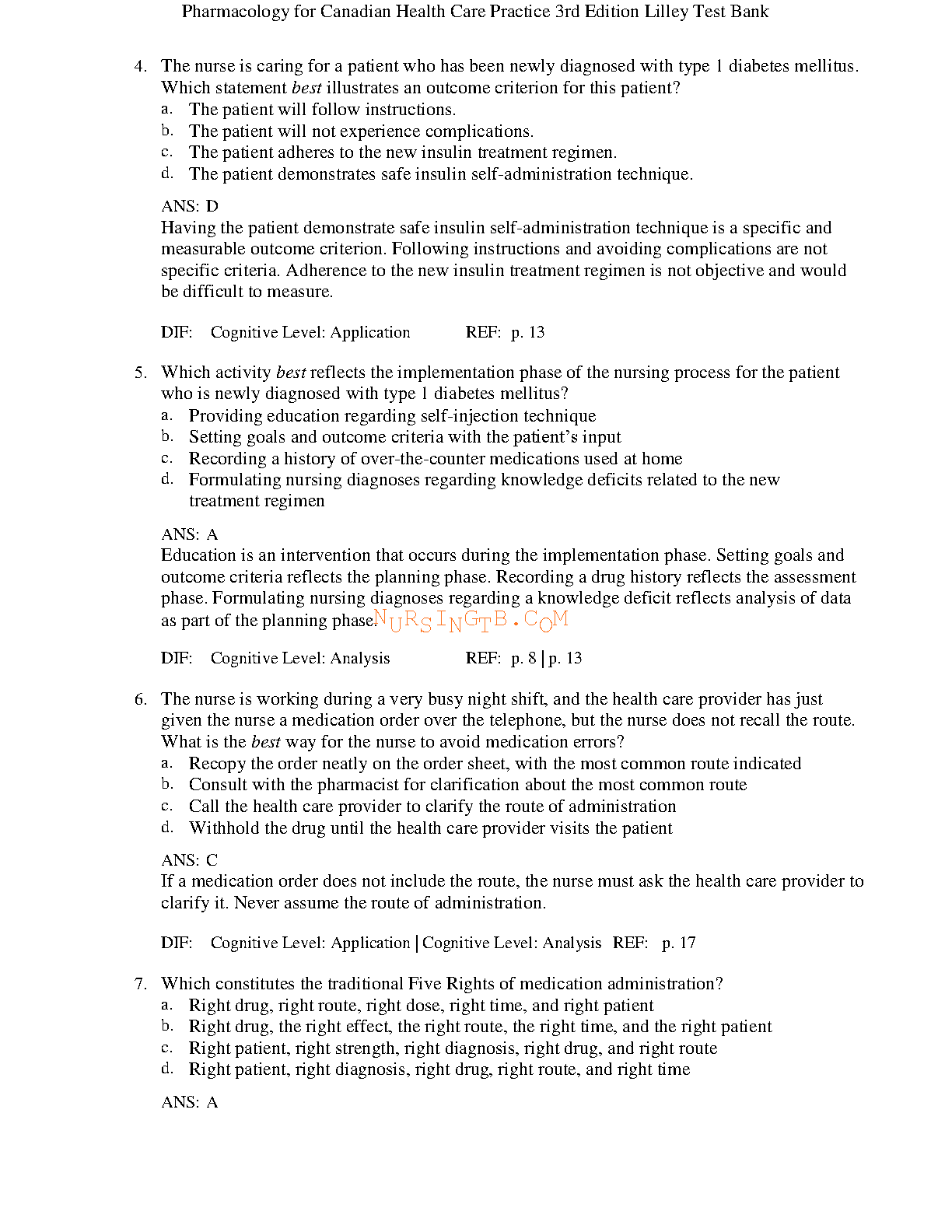 Test Bank for Pharmacology for Canadian Health Care Practice, 3rd Canadian Edition by Linda Lane Lilley, Shelly Rainforth Collins, Julie S. Snyder, Beth Swart