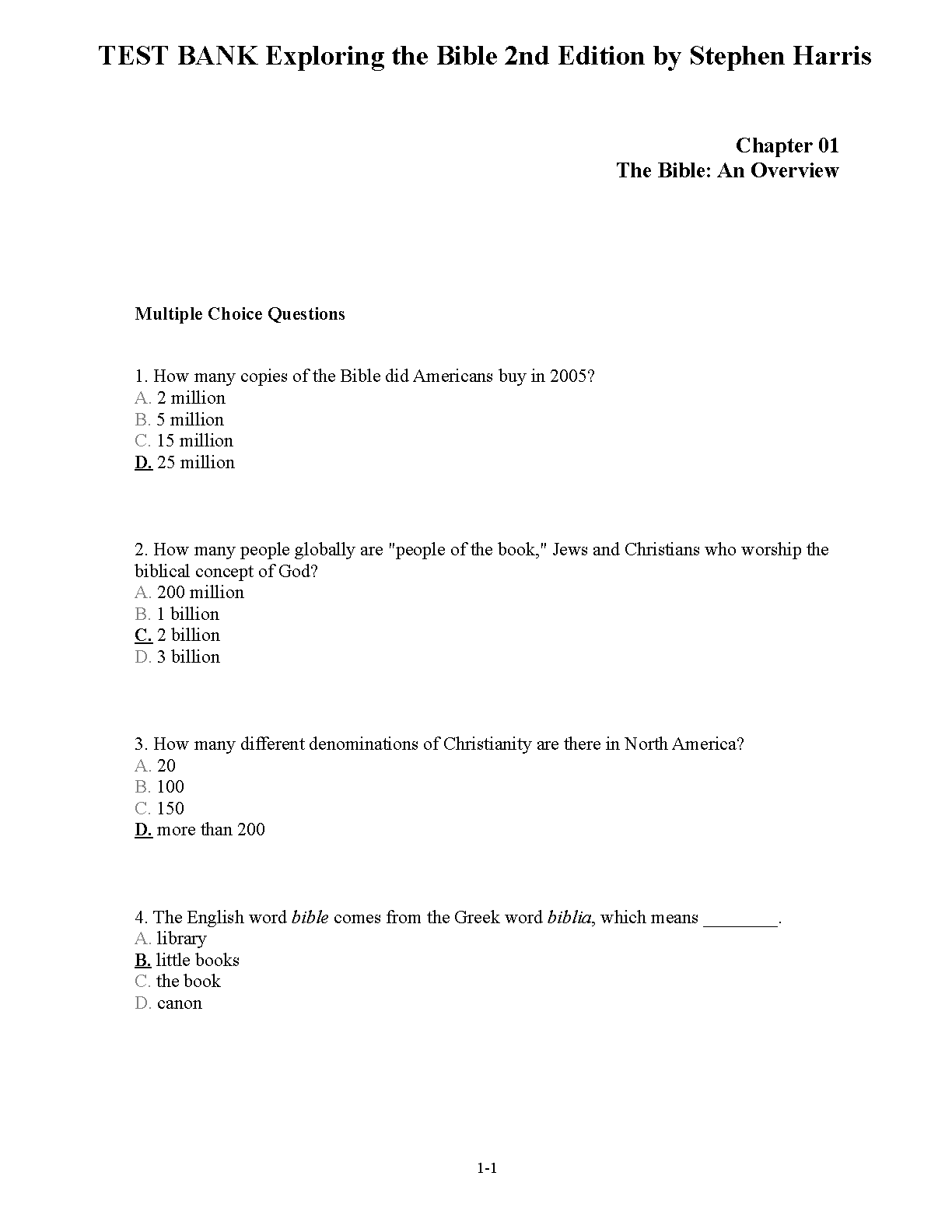 Test Bank for Exploring the Bible, 2nd Edition by Stephen L. Harris (Questions and Answers)
