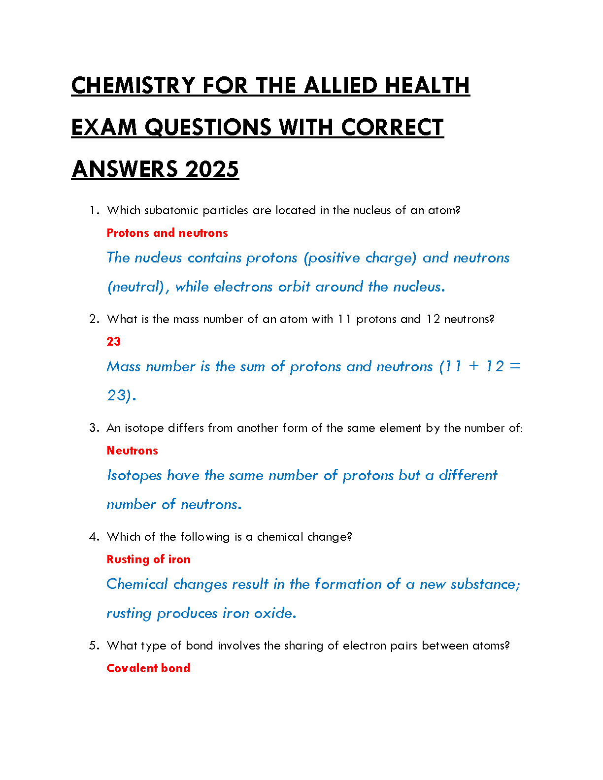 Test Bank: Chemistry for Today (Allied Health), 10th Edition by Seager & Slabaugh | 2025 Exam Questions & Verified Answers