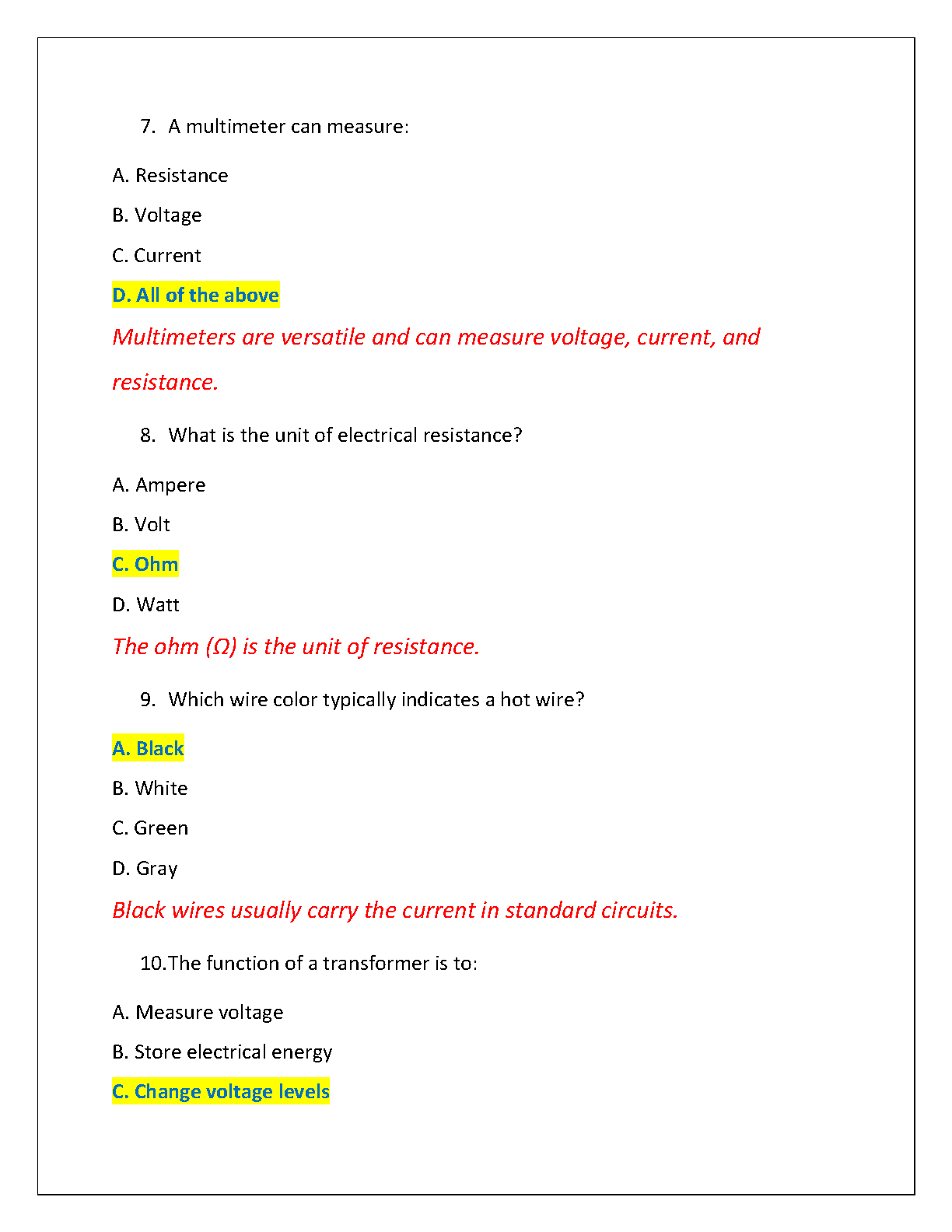 Ace your Electrical Craft Helper Exam with our latest study guide for the 2025/2026 season! This comprehensive resource is a complete test bank featuring a wide range of practice questions with detailed, verified answers and explanations. Each question is designed to mirror the actual exam, covering essential topics such as circuit functions, tool usage, safety protocols, and wiring standards. This is the ultimate tool to boost your confidence and help you pass with flying colors on your very first attempt, saving you from costly and time-consuming resits.