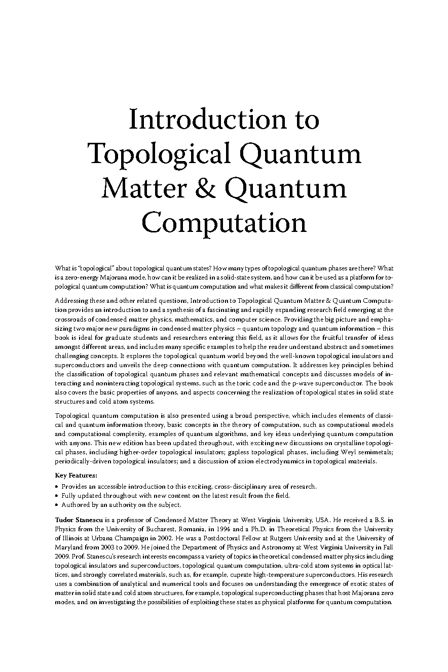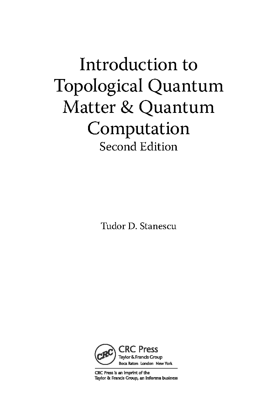Test Bank for Introduction to Topological Quantum Matter & Quantum Computation, 2nd Edition by Tudor D. Stanescu