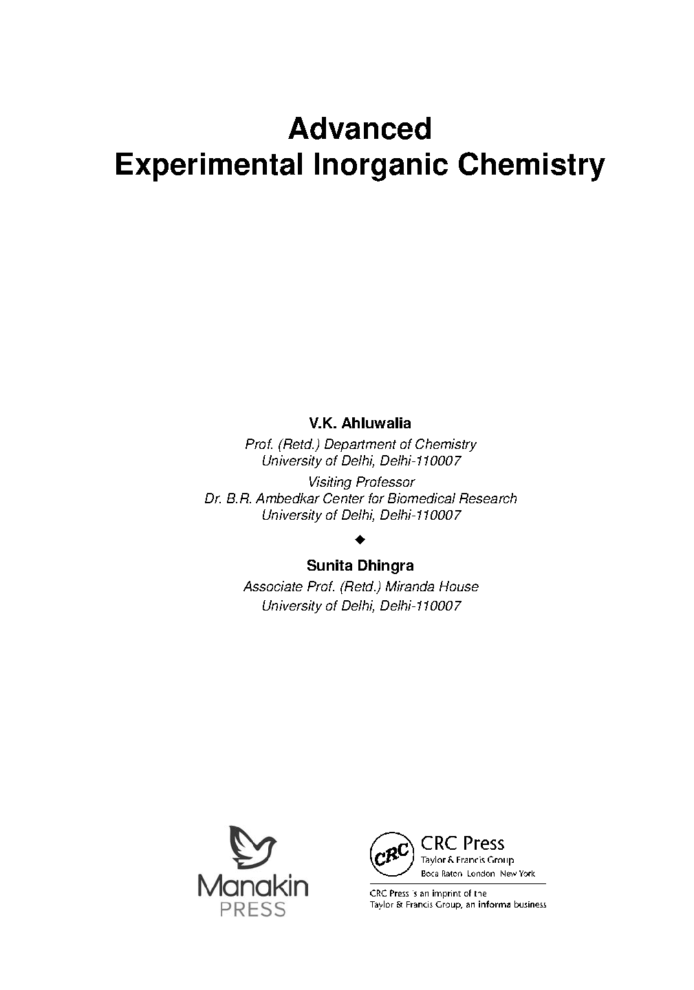 Unlock your potential in inorganic chemistry with the definitive guide for the 2025/2026 academic year: 'Advanced Experimental Inorganic Chemistry' by V.K. Ahluwalia and Sunita Dhingra. This indispensable resource is expertly crafted to provide students with the practical skills and theoretical knowledge needed to excel in their laboratory work and examinations. Covering everything from fundamental techniques to the complex synthesis and characterization of coordination and organometallic compounds, this guide ensures a thorough understanding of the subject. Equip yourself with this essential study aid to master challenging concepts, ace your practicals, and pass your exams on the very first attempt, avoiding costly and stressful resits.