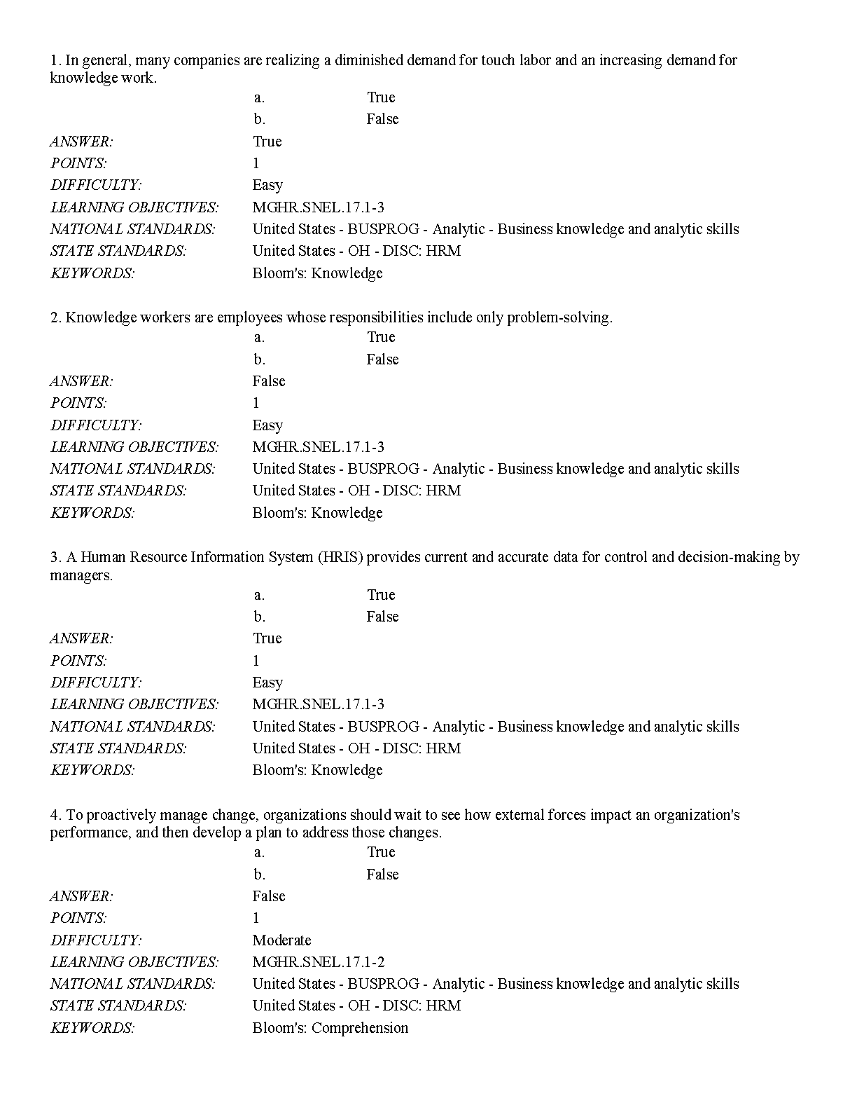 Test Bank for Managing Human Resources, 17th Edition by Scott A. Snell, Shad S. Morris, and George W. Bohlander