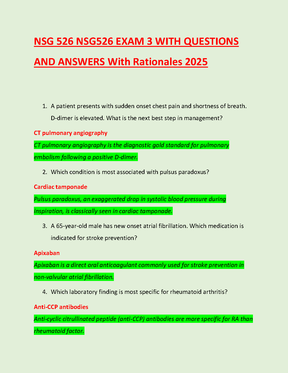 Unlock your full potential and conquer your NSG 526 Exam 3 with our premier 2025 test bank. This comprehensive study resource provides a complete collection of exam-style questions, each paired with a verified answer and a detailed rationale to deepen your understanding. Designed for the 2025/2026 academic year, this guide is your key to mastering complex topics, building confidence, and passing your exam on the very first attempt. Avoid the stress of resits and secure your success in NSG 526 today!