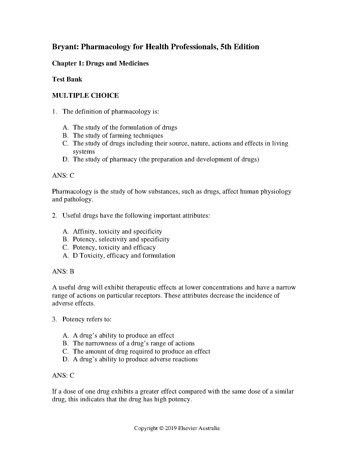 Test Bank for Pharmacology for Health Professionals, 5th Edition by Bronwen Bryant, Kathleen Knights, Shaunagh Darroch, and Andrew Rowland