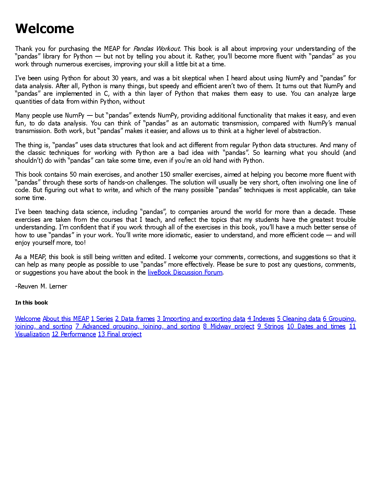 Unlock your full potential in data science with the latest 2025/2026 'Pandas Workout' guide by Reuven M. Lerner. This comprehensive resource is packed with 50 targeted exercises designed to transform you from a novice to a proficient Pandas user. Each problem is crafted to solidify your understanding of core concepts, from dataframes and series to advanced data manipulation and aggregation techniques. Prepare effectively for technical interviews, certification exams, and real-world data analysis challenges. Get this essential study aid today and guarantee your success on the first attempt, eliminating the need for costly resits!